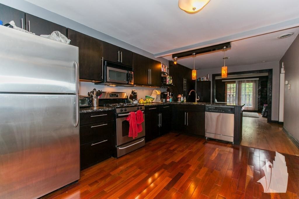 Come view this beautiful and unique three bedroom, one bath in Wicker Park. Available NOW! Remodeled kitchen with cherry cabinets and stainless steel appliances. Separate dining room and living room with gorgeous, high ceilings. Multiple outdoor spaces with a balcony out front and patio in the back. Third bedroom is duplex up and all three bedrooms can fit a queen size beds. Walk to Division blue line stop-only 4 blocks away! Laundry is free and onsite along with garage parking available for $175/month. No cats allowed but dogs may be negotiable with non-refundable pet fee of $400 plus $25/month pet rent.