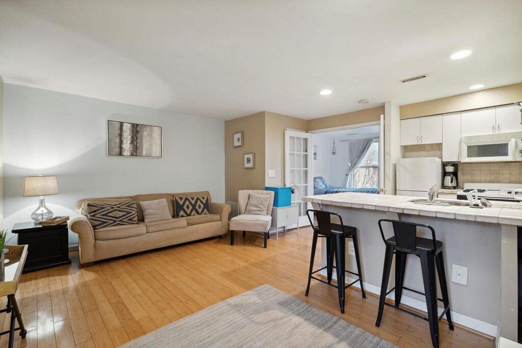 1 month minimum - corporate apartment set up for people traveling to Philadelphia that need short term, furnished housing. Furnished (private, whole apartment) one bedroom condo in the heart of the art museum neighborhood! Unit has kitchen with custom tumbled marble counter top, dishwasher, and microwave. Features include bamboo hardwood floors throughout, French doors leading to bedroom, and shared deck off of living space. Lots of closet space! Washer/dryer in building! Central air! Fairly easy neighborhood parking. Pull out sofa in living room. Pet friendly building. Fun neighborhood with lots of restaurants and cafes. Only 7 blocks from Kelly Drive (if you like to run or bike)! Apartment comes fully furnished, including linens/dishes/cooking utensil, etc. Flat rate charge of $150/month for utilities and wifi. Close to Hahnemann, Jefferson, Temple and Children's Hospitals and many different modes of public transportation (subway, trains, and buses) - great center city location!! Dogs and cats ok under 35 lbs
