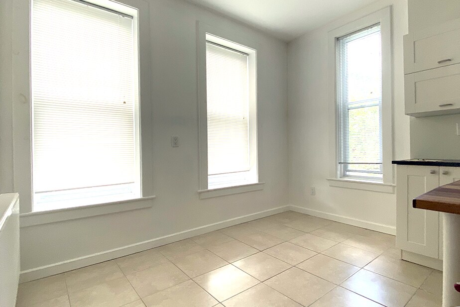 Unique apartment in a quiet building. The kitchen features stainless steel appliances, a farmhouse sink, and a custom island. The living room, dining room, and bedroom are all spacious. This apartment offers additional space, ideal for someone needing a study or home office. There is plenty of natural light. Original pine flooring extends throughout, with tiled areas in the kitchen and bathroom. The window treatments consist of mini blinds. Included utilities are heat, hot water, and garbage removal. A laundry facility is available in the building for tenant use. Extra storage space available. Tenants can enjoy access to a well-kept enclosed backyard.