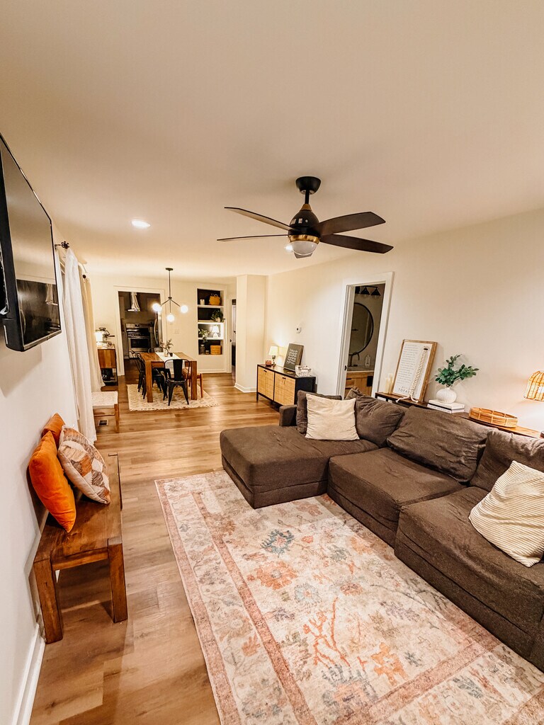 Welcome home to this beautifully updated 3-bedroom, 2-bath residence on a quiet street in the Bates-Hendricks neighborhood, just south of downtown Indianapolis. Located in a safe, walkable area, this home offers the perfect blend of neighborhood charm and city convenience, with local bars, restaurants, parks, and entertainment nearby and Fountain Square within walking distance. Fully updated in 2022, the home features modern finishes, new appliances, and thoughtful upgrades throughout including a security system provided by the owner for added peace of mind. Enjoy outdoor living in the fully fenced backyard with a deck and patio, ideal for relaxing, entertaining, or pets (allowed with prior approval). A covered front porch offers the perfect spot to unwind during warmer months. Additional highlights include off-street parking for up to three vehicles, ample street parking, and a comfortable layout well-suited for families and young professionals. With quick access to downtown and a short drive or Uber to everything Indianapolis has to offer, this home is an excellent place to settle in and enjoy city living.