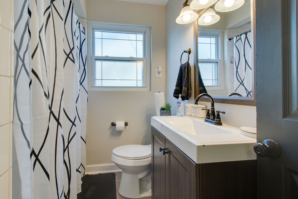 FULLY FURNISHED MID TERM RENTAL for insurance claims, travel healthcare workers, students and more! 3 bedroom in Cincinnati. SHORT TERM LEASING AVAILABLE 1,3,6,and 12 months. This property is minutes away from Ronald Regan Highway and I-75. One full bathroom on main floor, attic area has its own half bath for privacy, basement also has half bathroom. Smart TVs throughout home with fully equipped kitchen. Drive way parking, fully fenced back yard, and included Washer and Dryer. Three comfortable foam mattresses; one queen size and two full size, and one futon. The attic is like its own unit, with full size bed, smart TV, half bathroom, large L shape desk with computer chair, large walk in closet, and futon for lounging/ reading or sleeping space for guest.