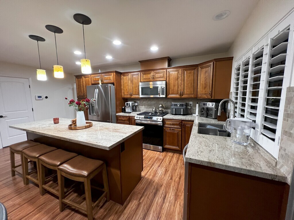 Stunning View Home in Prime Porter Ranch Cul-De-Sac | EV Ready | Tons of Storage Welcome to this beautifully upgraded 3-bedroom, 2-bath home located north of Rinaldi in one of Porter Ranch’s most desirable neighborhoods. Tucked away on a quiet cul-de-sac, this 8,216 sq. ft. lot offers breathtaking city light and valley views — the perfect place to unwind after a long day. Step through the rustic double doors into a warm and inviting living room featuring soaring arched ceilings and an open, airy layout filled with natural light. The upgraded kitchen is designed for both functionality and style, featuring: • Granite countertops • Custom mosaic backsplash • LED under-cabinet lighting • Spacious island with abundant cabinetry • Ample storage throughout Storage will never be an issue — newly installed cabinets line the primary bedroom, second bedroom, and garage. Additional highlights include: • Large private backyard with valley views • Upgraded electrical panel • EV charging capability up to 60 amps • Attached garage • Quiet residential street • Close to top-rated schools, parks, and shopping Homes with valley views and EV-ready infrastructure in Porter Ranch rarely come available. This property combines privacy, storage, modern upgrades, and location in one exceptional lease opportunity. Available April 1st. Schedule your private showing today.