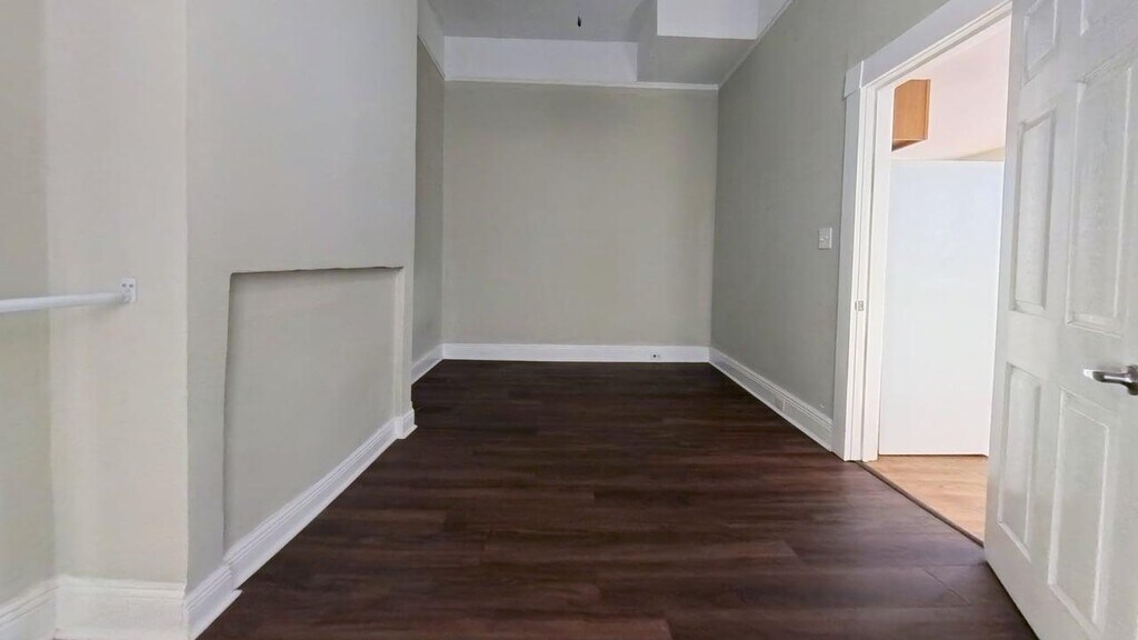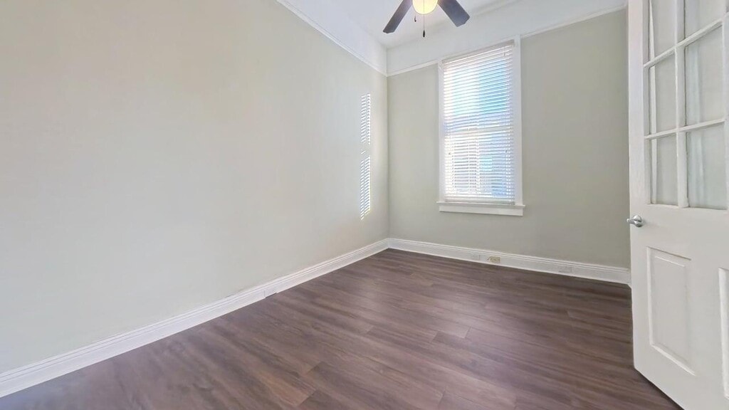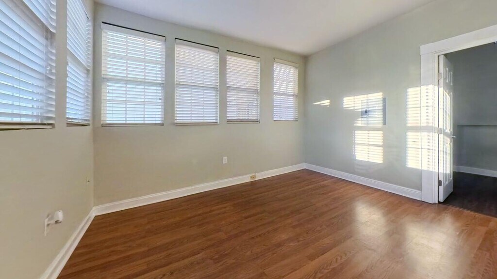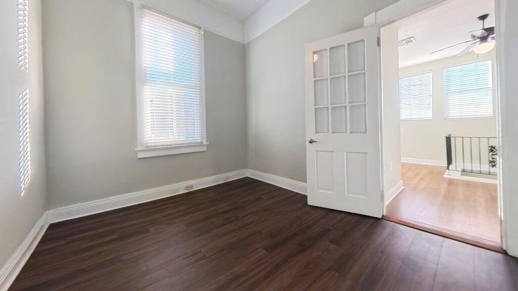 This well-appointed 2nd floor apartment in New Orleans offers 830 sq. ft. of thoughtfully designed living space. The home features two bedrooms, including a primary bedroom of 170 sq. ft., and one full bathroom. The open-concept living area showcases beautiful luxury vinyl hardwood flooring that extends throughout the apartment, creating a seamless and elegant look. The kitchen is a standout feature, boasting warm wooden cabinetry, stainless steel appliances, and ample counter space. Large windows in every room flood the space with natural light, enhancing the airy feel of the apartment. The bathroom is modern and pristine, featuring a spacious shower/tub combination and a stylish vanity. One of the bedrooms includes built-in shelving, adding both character and practical storage solutions. The apartment also benefits from a dedicated laundry area, adding convenience to daily living. The neutral color palette throughout the apartment provides a blank canvas for personal decorating styles. With its blend of modern amenities and classic New Orleans charm, this apartment offers a comfortable and stylish urban living experience.