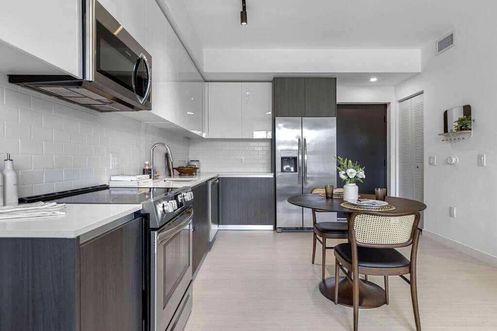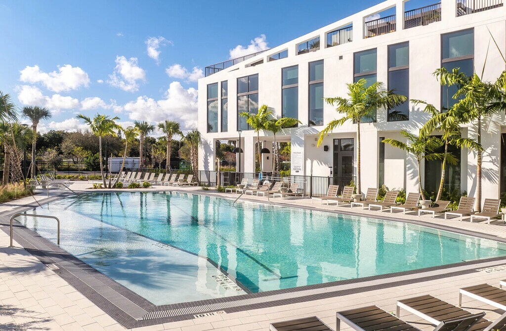 Step into a modern living experience designed for comfort, style, and convenience. These thoughtfully designed residences feature spacious open floorplans, sleek quartz countertops, modern cabinetry, and 10-foot ceilings that enhance the airy atmosphere. Smart home features and Wi-Fi connectivity keep you seamlessly connected, while impact-rated windows and doors offer safety and peace of mind. Enjoy elegant vinyl flooring throughout, in-home washer and dryer, energy-efficient Frigidaire appliances, and walk-in closets that combine functionality with contemporary design. Each unit includes a private balcony—perfect for unwinding after a long day or enjoying the outdoors from the comfort of your home. Beyond your front door, a full suite of upscale amenities awaits. Take advantage of a resort-style lap pool, a rooftop lounge with entertainment space, and a summer kitchen with BBQ grills ideal for hosting or relaxing. Stay productive in the fully equipped co-working center with private office suites, or break a sweat in the state-of-the-art fitness center and flex room.
