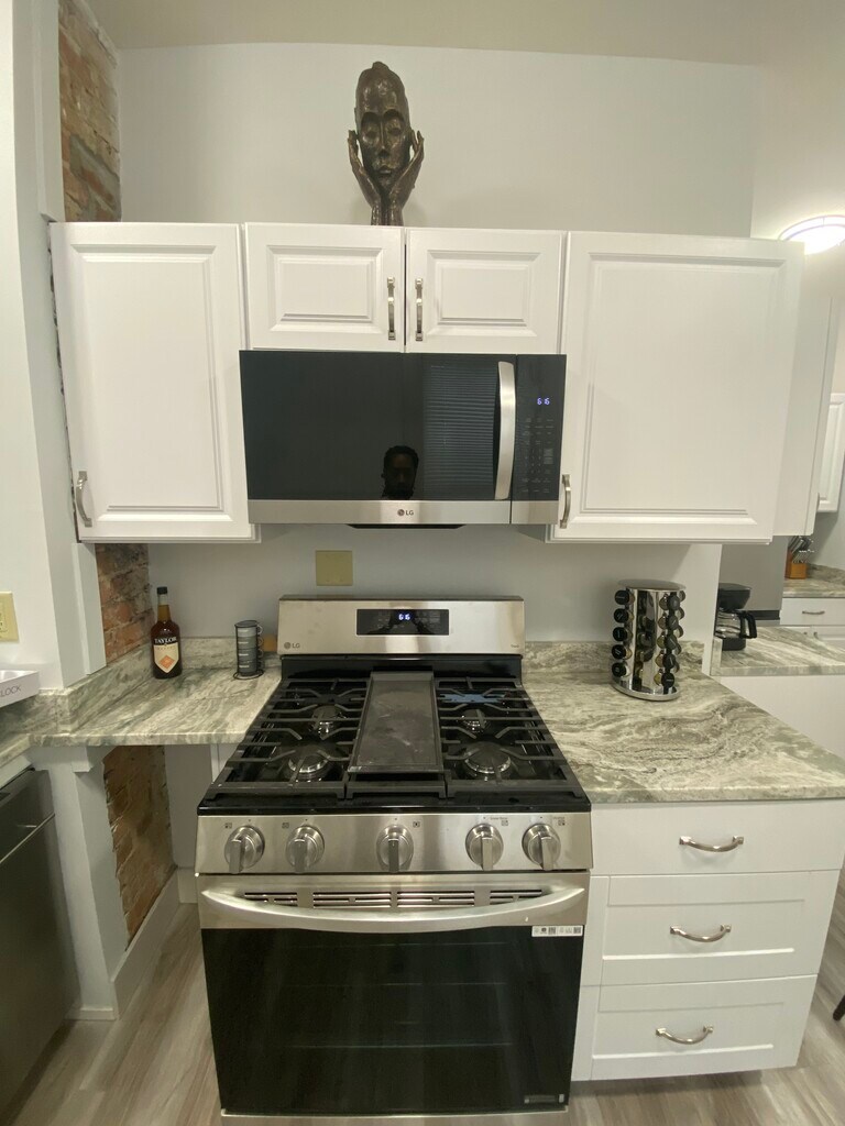 Seconds from I-71 This fully furnished Flat offers convenient location and comfortable living space located minutes from Xavier University and Cincinnati Children’s Hospital. A new chef’s kitchen with luxury granite countertops stainless steel LG thin Q appliances. Between its exposed brick and artsy design the fun doesn’t stop there. The walk in marble shower will blow your mind. Professionally crafted. It also has a second bedroom loft on third floor for extra space. A must see! (Traveling professional and student friendly)