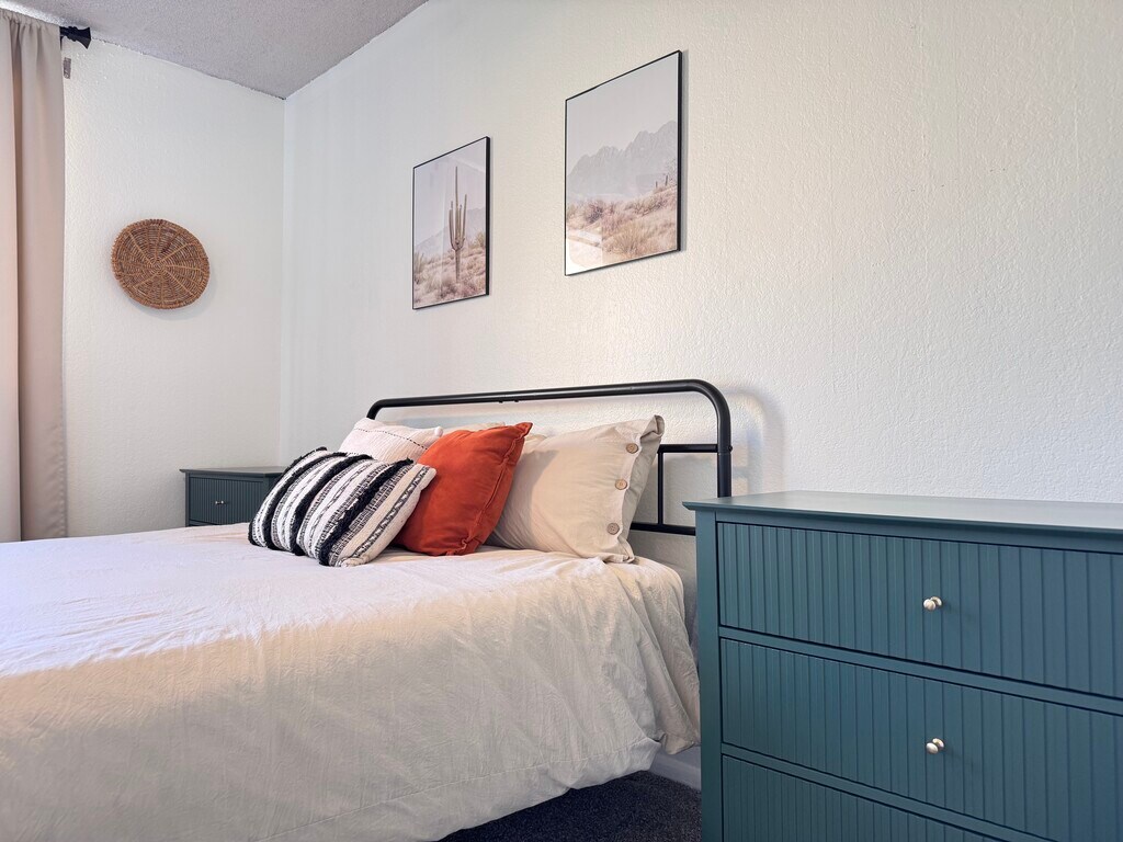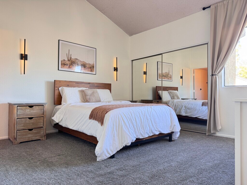 Interior Highlights • Quartz kitchen counters • Full-size in-unit washer/dryer • Private balcony with screened door • Smart TVs in living room & loft • Queen beds in both bedrooms • Loft with large desk & comfy chair Community & Parking Gated entry for security/privacy. Lush grass areas (rare in AZ!), community pool + jacuzzi, dog park. Assigned covered parking + plenty of free guest spots. Pet Policy Pets up to 40 lbs, max 2 per unit; dog breed restrictions per HOA. Location Perks • Minutes to Loop 101 for easy Valley access • 5 min to HonorHealth Deer Valley Medical Center • 12 min to The Shops at Norterra, Desert Ridge, High Street • 14 min to Mayo Clinic Phoenix Pricing & Terms (Water, sewer, trash always included) • 3-5 months: $2,400/mo (utilities included; electric capped at $250/mo—overage reimbursed by tenant) • 6 months: $2,100/mo (tenant pays electric & WiFi) • 12 months: $1,950/mo (tenant pays electric & WiFi) Fees • Refundable security deposit: $1,000 (returned post-inspection if no damages/cleaned) • Non-refundable pet fee: $300 per pet Message today for questions, availability, or to set up a tour — I’m excited to welcome you to your new home!