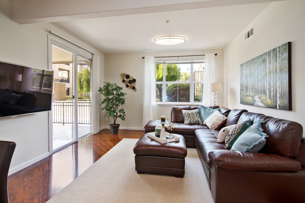 Desirable Rivermark - Mission Terrace Condo. ** Contact Property Manager for the Open House timings & First Month Move-in Special offer ** ** Model condo, 3rd floor - corner unit with privacy, patio view, new paint, new washer and stainless steel appliances** Corner model condo unit with 3 bedrooms, 2 bathrooms, and ~1400 sq. ft. of spacious living area. Corner unit with a large patio overlooking the garden. *Model home in a perfect location within the complex. *Open floor plan with high ceilings and recessed lighting. Features include a breakfast bar and stainless steel appliances. Inside the laundry closet. Central heating and air conditioning. *Large master bedroom suite with walk-in closets and updated bathrooms. *Assigned underground side-by-side parking for two vehicles plus guest parking. Family-friendly environment in a gated community. The complex offers a range of amenities, including a pool, spa, gym, exercise room, and play area. The photos are from a staged unit; actual photos can be provided on request* *Walk to Rivermark shopping complex, library, and Don Callejon School. *Close to Great America Park and Levi's Stadium. *Easy commute to many tech companies with quick access to Freeways 101, 237, and 880. Elementary school: Don Callejon School [K to 8th] ** Contact Property Manager for the Open House Appointments ** *** Self-tour open hours by appointment *** Mon: 10 am - 6 pm Tue: 10 am - 6 pm Wed: 10 am - 6 pm Thu: 10 am - 6 pm Fri: 10 am - 6 pm Sat: 10 am - 6 pm Sun: 10 am - 6 pm