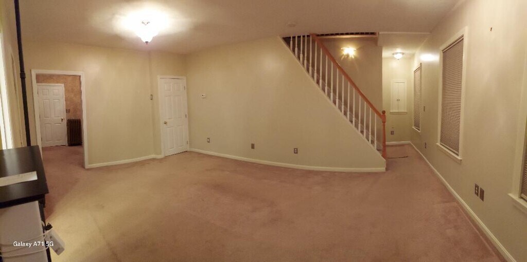 Gorgeous unit with Town House feel, featuring Three Large Bedrooms, 2 Full Bathrooms one with washer and dryer. The oversized main bedroom has an in suite Full Bathroom with Jacuzzi! Large deck with French doors, another deck off kitchen. Kitchen comes with stainless steel appliances, refrigerator, gas stove, dishwasher, large microwave above stove, and custom cabinetry. Skylights and Cathedral ceilings give a specious feeling. There is plenty of storage room in unit and basement. Off street parking. Work from home or need extra storage?!? Separate individual office and basement storage until available -monthly additional rent depends on usage. First, Last due at 12 month Leases. No Broker Fee! Strong References Required. Only 8 minutes away from the new train!!!