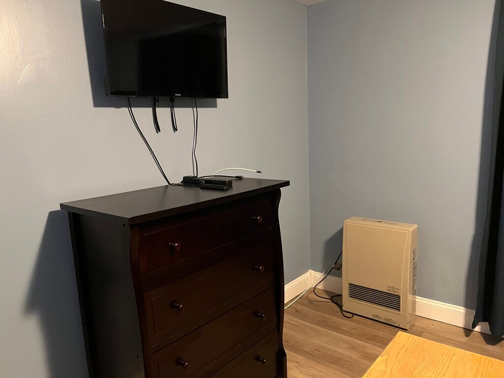The unit is furnished and clean. You have a private bathroom. The Kitchenette has a Refrigerator with a Freezer and a Microwave for cooking your meals. There is also a Table and Chairs for dining. The Bedroom has a Queen Size Bed and a Dresser, Desk and Cable ready TV. Your own Heating Unit and AC. You will need to have your own Bed and Bath Linens and Cable. Internet is provided with your rent.