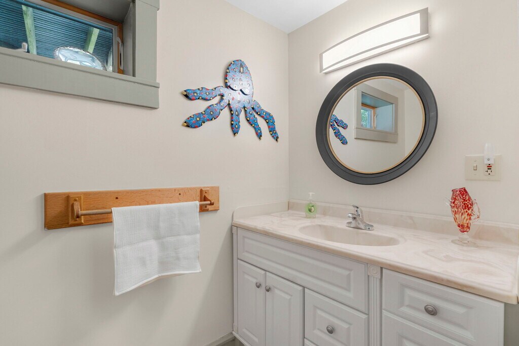 WATER VIEWS Bedroom 1 & 2 : King bed Family room with futon and day bed 2.5 bathrooms Washer/Dryer Fully Stocked Kitchen / Dining area Outdoor space with grill & fire pit