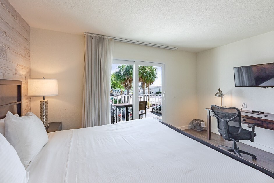 This room has a full living room with TV, Full kitchen, a King size bed and a full bathroom with shower. Also, in addition to the interior room, there is a balcony and full use of our large swimming pool. Ample parking available on property's parking lot. The apartment is located walking distance from Publix, Walgreens, Bank of America, and UPS drop off store. Less than a mile drive from Home depot.