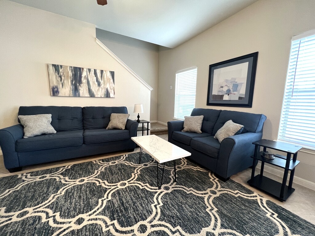 Great Price! Fully Furnished 3/2.5 - All Utilities - Pool - Lawn Care Available for month-to-month (weekly, monthly, furnished, corporate housing) short-term furnished rental Rent includes all utilities HUGE floor plan (2 full living rooms - upstairs/downstairs) Very quiet house (Modern build + solid insulating) Very quiet neighborhood and neighbors Tile floor downstairs 1 car garage + driveway space + street parking Weekly lawn care Modern stainless appliances (+ coffee machine, blender, mini oven, toaster, blender) Granite countertops Great AC & heat Walkable & bikeable community Schools, gym, grocery, trails, lakes, parks, and more within walking distance W/D in Unit Nicely decorated Completely Furnished