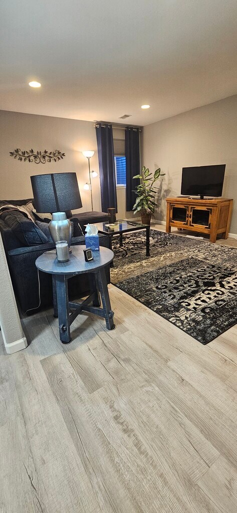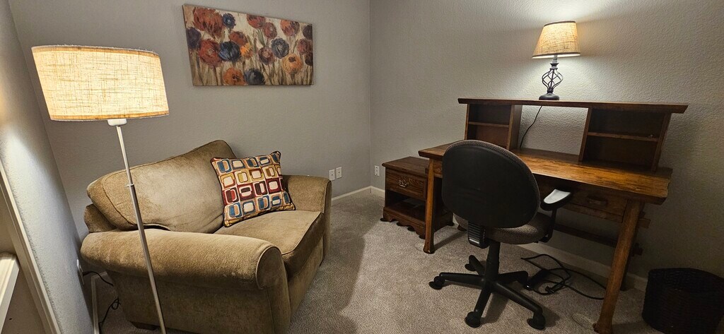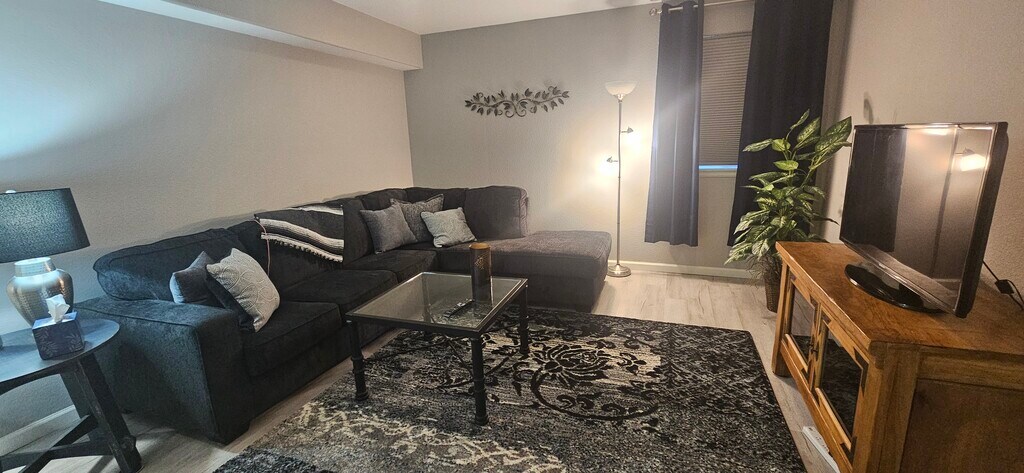 Finished space in fall 2024, with all new windows in summer 2025. Spacious 1,800 sq.ft. apartment available in a quiet 9-unit townhome community. Fully furnished and move-in ready. Features: Private bedroom with large walk-in closet, good lighting, two nightstands, two dressers, full-size window with a blind and curtain for privacy. Full bathroom with shower/tub, new vanity and mirror, and storage under the sink. Spacious living room with large sofa, footrest, coffee table, and Smart TV with streaming capability. Dedicated office/workspace with desk, shelving, small side cabinet (fits printer or storage), and comfy chair with reading light. Brand new kitchen with a full-size stove/oven, refrigerator/freezer with automatic icemaker, and plenty of cabinet storage. Fully equipped with pots, pans, utensils, cooking and baking tools, and toaster oven, coffee maker, and blender. Wi-Fi and all utilities included. Free off-street parking and additional storage. Tenant Preference: Female, age 38+. No smoking or vaping of any kind on the property. Located within walking distance to grocery stores, coffee shops, awesome homemade ice cream shop, restaurants, bars, and close drive to Belmar, parks, lakes, 6th Avenue, Hampden Ave, C-470, and easy access to I-70 (mountains) and central Denver. Lease Terms: 6-month minimum lease, and longer terms available. Application Requirements: Background check (for serious applicants). Minimum 700 credit score. References from two most recent landlords and employer (if not retired). First month’s rent + $975 security deposit due at move-in. Contact to schedule a viewing or request more details.