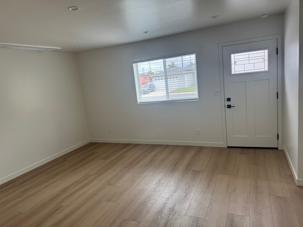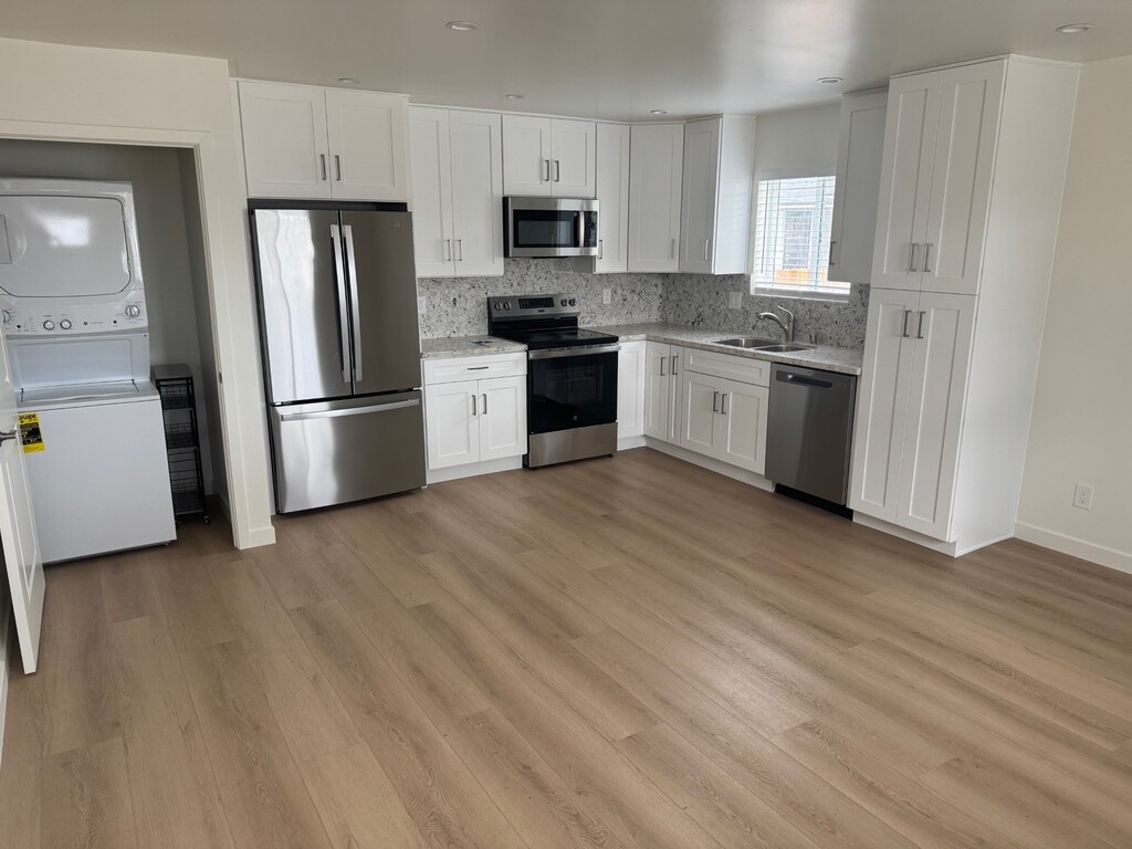 Discover this detached ADU unit in the vibrant South Bay area of Gardena. This charming 2 bed, 1 bath home boasts 749 square feet of thoughtfully designed living space. Enjoy the beauty of wood-laminate floors throughout, and a modern kitchen equipped with electric appliances including a refrigerator, stove, over-the-range microwave, and dishwasher. The spacious bathroom features a walk-in shower and a built-in linen closet. A split mini AC/heating unit ensures comfort year-round, while the separate private yard space invites outdoor relaxation. Situated in the heart of Gardena, this location offers easy access to local parks, shopping centers, and dining options, making it a great choice for those seeking convenience. The Driveway accommodates two vehicles, and for electric vehicle owners, there is an outside outlet ready for a charger. *12-month lease. *No pets