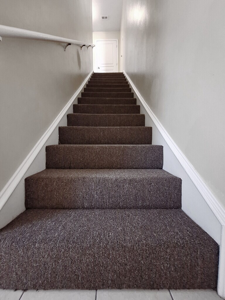 Charming townhouse style apartment. Upon entering, you are warmly greeted by ceramic tile floors and a bright and open floor plan that seamlessly connects the kitchen to the living room. Additionally, a laundry room with washer and dryer hookup and 1/2 bathroom are built in for your convenience. Upstairs you will find two large bedrooms with large closets and a full bathroom in between. Parking for two cars is available in the front of the building.Overall, this charming townhouse style apartment offers a blend of comfort and functionality. With its inviting entrance, open floor plan, and built-in amenities, it provides residents with a delightful living space.