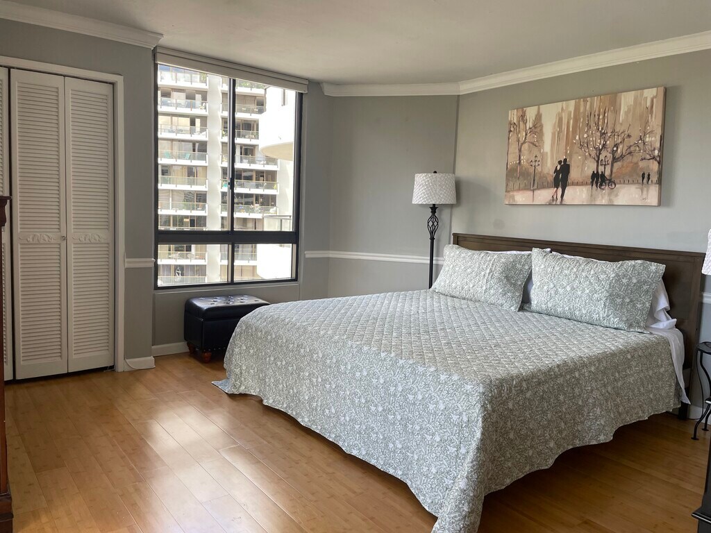 FULLY FURNISHED, PET FRIENDLY, UTILITIES INCLUDED! Canterbury Place. Furnished 2 bedroom 2 bath bright and spacious condo ready for you to come home to! Partially renovated in 2021 with updated vinyl plank flooring throughout living room. Expansive views of Fort DeRussy park, the ocean, and Diamond Head! Conveniently located near Waikiki's famous beaches, restaurants, shopping, and nightlife. Minutes from downtown and Kaka'ako/Ward area. Washer and Dryer in unit. 1 Parking stall. Pets are negotiable and will require an additional deposit of $500. The building requires all pets to be carried through common areas. 24-hour security guard.