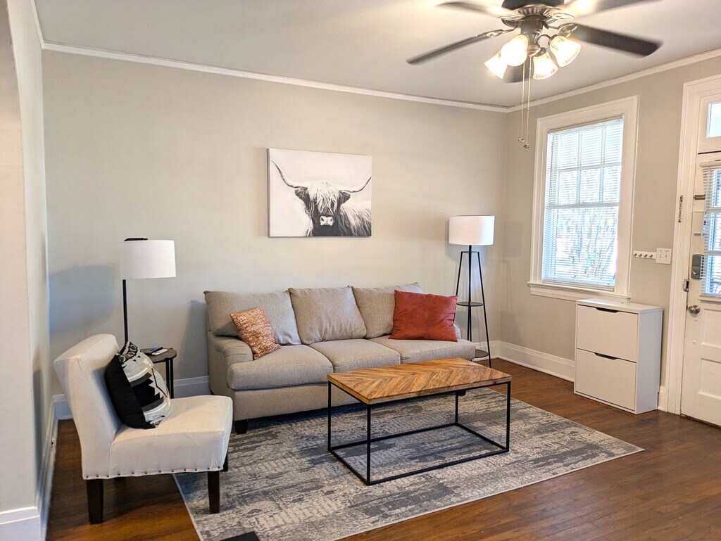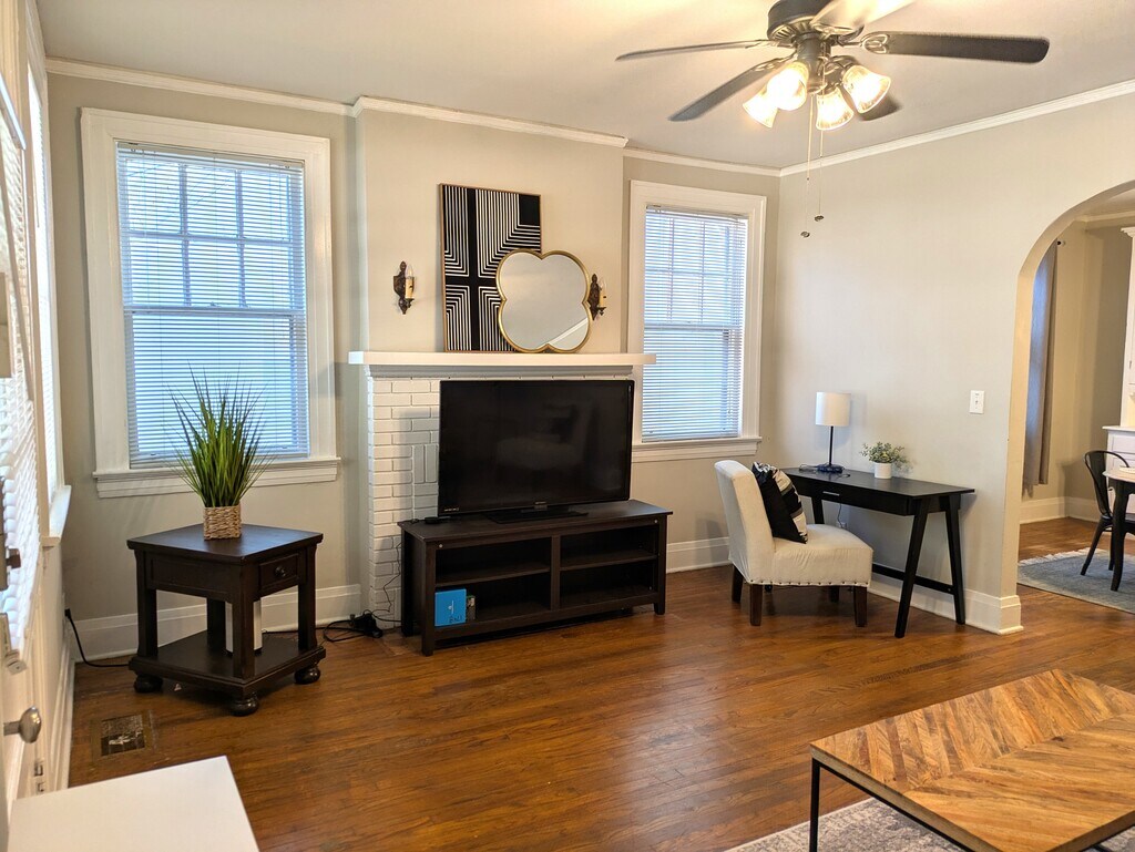With all utilities and a washer and dryer included, this duplex unit is ideal for those seeking comfort, functionality, and a peaceful place to unwind after long shifts or workdays. The unit is spacious, bright and boasts charming historical details like hardwood floors, high ceilings, crown molding and transom windows. You'll be centrally located and 5 minutes away from downtown, shopping and hospitals. The unit has its own driveway and a spacious, gated shared backyard. Whether you're in town for a contract job, relocation, or travel assignment, you'll feel right at home at 1910 Madison Ave.