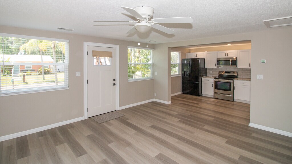 Cute 2 bedroom 1 bath bungalow in the heart of desirable Gulfport. The home is recently fully remodeled and offers a spacious open concept kitchen with granite counters. The home boasts hurricane impact windows throughout and native landscaping for minimal upkeep. Situated on a brick street the neighborhood is very walkable and located near Gulfport's Arts District and numerous parks, library and community center. Central heat and air conditioning and laundry for your convenience and comfort.