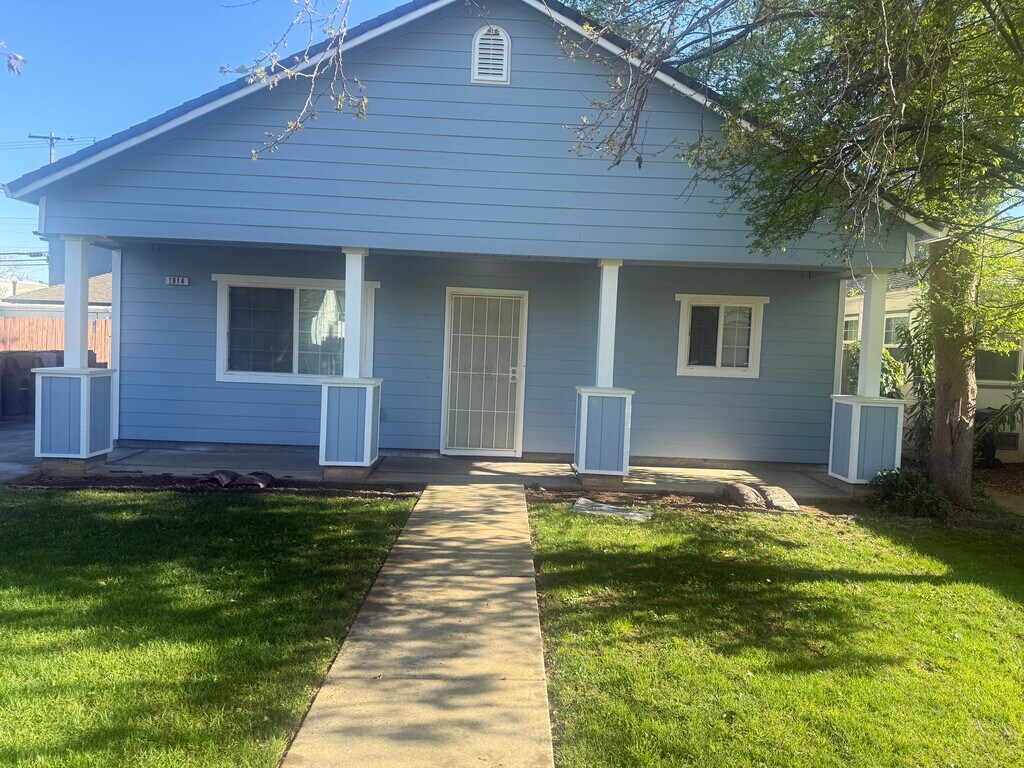 Freshly painted home interior and exterior with a one car garage and yard. Appliances include stove,new microwave, new dishwasher, garbage disposal and refrigerator Hardwood floors Security system, cameras and security door Central heating and air Garbage and water paid by the owner Close to elementary school and church Quiet street Owner lives in mother-in law unit separated by 6 foot fencing
