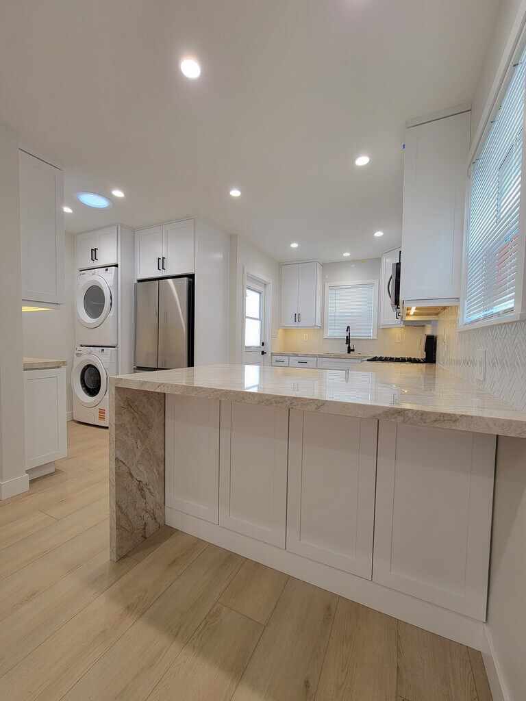 Step into modern living with this stunning, newly remodeled unit, completed in 2025 and located in the heart of Lomita at 1916 257th St. Thoughtfully designed with both style and functionality in mind, this 1-bedroom, 1-bath gem spans 650 square feet and offers everything you need for comfortable, contemporary living. The open floor plan welcomes you with sleek vinyl flooring, recessed lighting, and a bright, airy ambiance. The kitchen is a showstopper, featuring soft-closing cabinets and drawers, a charming backsplash, and all appliances included for your convenience. Need more? There's even a washer and dryer in-unit to make laundry a breeze. Bedroom is generously sized, complete with mirrored closet sliding doors for a touch of elegance. Ceiling fan keeps the room cool and inviting, while dual-pane windows bathe the space in natural light while keeping the noise out. With plenty of cabinet and storage space, you’ll have room for everything. Outside, you’ll enjoy your own front yard with porch and private backyard with deck. Capture the perfect balance of modern design and practical living. Centrally located near freeways, shopping centers, public transportation, and beaches of South Bay.