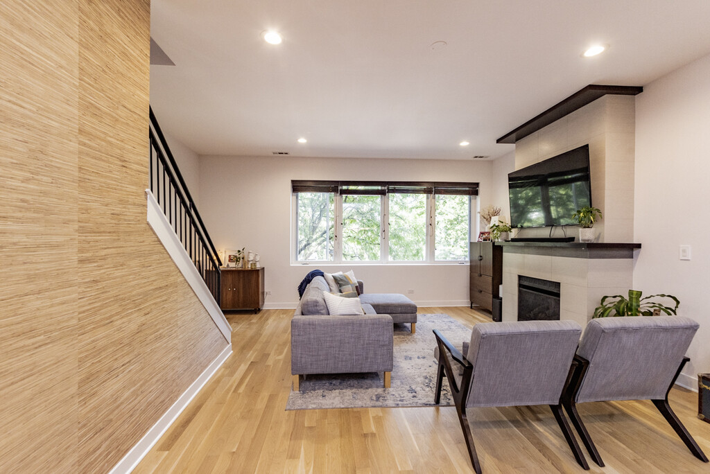 This modern 2BD 2.5BA penthouse duplex condo features soaring 11 ft ceilings creating a luxurious and spacious atmosphere. Beautiful oversized cooks kitchen with quartz counters, a waterfall island, and upgraded stainless steel appliances. Smart home with Nest thermostat and programmable color changing LED canned lighting. Set your lighting to match your mood or your music and cozy up near the fireplace. Retreat to the top floor where your spacious KING-sized primary bedroom awaits, complete with an ensuite bath, double bowl sink, shower sprays, and a jetted tub. Additional highlights include a walk-in closet, side-by-side washer and dryer, and a freshly painted interior. Garage parking is included, along with 3 outdoor spaces for outdoor grilling and relaxation. You are centrally located in all that Logan Square has to offer. Don't miss this opportunity to experience urban luxury at its finest. Schedule a viewing today!