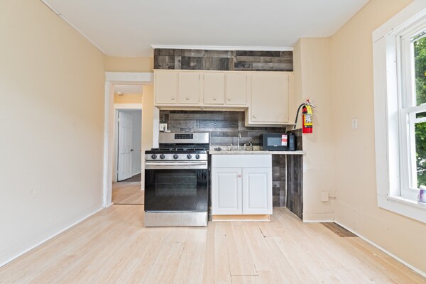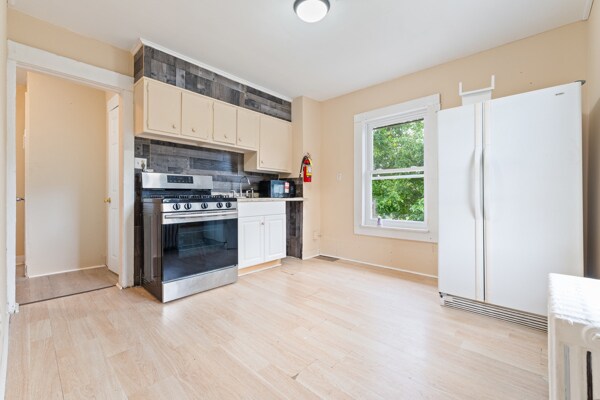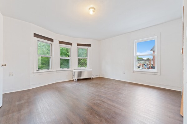 Freshly painted and carpets removed. All Hardwood or Laminate flooring in entire house. Comes with a Gas Range, New Microwave and a Large Refrigerator. Owner pays for Heat and Water, Tenant pays for Their apartment Electricity and Gas. 1st month rent and 1.5 month security deposit is required.