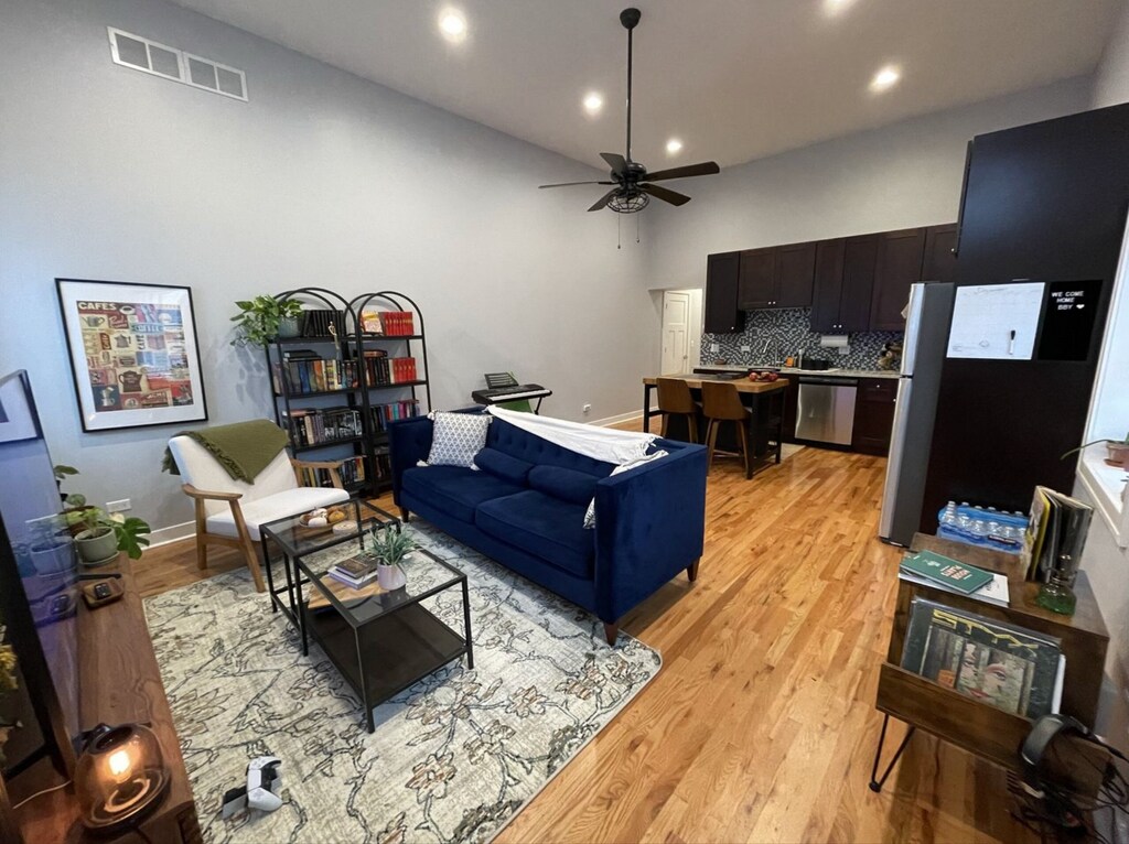 Luxury meets convenience in the heart of Chicago, IL. This 2-bedroom, 1-bathroom unit #1S is now available for rent! Step inside to find a fully upgraded kitchen with stainless steel appliances, granite counters, and a modern dishwasher. The spacious bedrooms offer deep closets for all your storage needs, while the large bathroom boasts a shower with great water pressure. Enjoy hardwood floors throughout, central heating and cooling, and in-unit washer dryer for added convenience. With windows facing South and West, natural light fills the space year-round. Don't miss out on the opportunity!