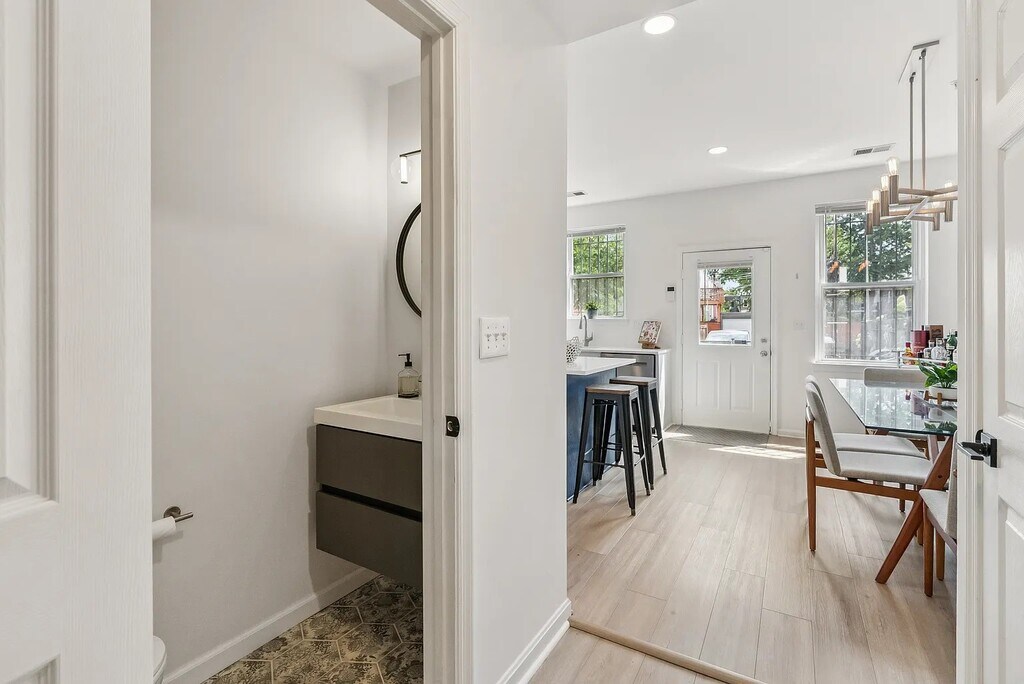 Beautifully renovated end-unit rowhome with 2+ private off-street parking spaces! This 3-bedroom, 2.5-bath home in historic LeDroit Park blends modern comfort with timeless character. Offering nearly 1,300 square feet of thoughtfully designed living space, a private landscaped backyard, and rare parking private parking, this home has it all. The main level features a bright living room with a bay window and a sun-filled kitchen boasting stainless steel appliances, abundant cabinetry, and an island with seating that flows seamlessly into the dining area—perfect for daily living or entertaining. A stylish powder room and laundry closet with new W/D complete the first floor. Upstairs, the spacious primary suite is your personal retreat, with a sitting area, large walk-in closet, and a renovated en-suite bath with sleek finishes. Two additional bedrooms share a second updated full bathroom, providing flexible space for guests or work-from-home. Step outside to your private oasis: a fully fenced yard with a mix of lush landscaping and hardscaping, plus direct access to convenient reserved parking. Situated just blocks from U Street, Shaw, and Bloomingdale, this home offers easy access to top restaurants, bars, and cultural destinations, including The Red Hen, Right Proper Brewing, the Howard Theatre, and 9:30 Club. Stroll nearby parks and tree-lined streets, or hop on the Shaw/Howard Metro for quick city access. Historic charm meets modern convenience in one of D.C.’s most vibrant neighborhoods. Don't miss this one!