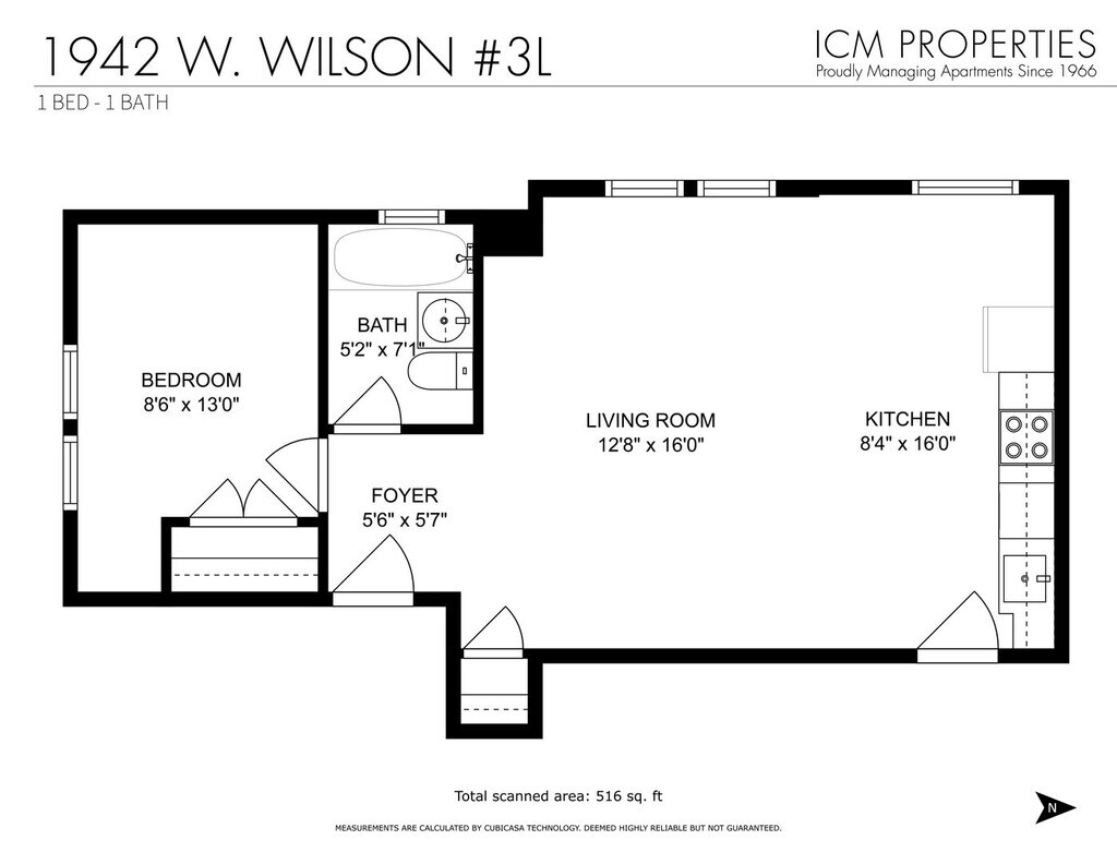 Apartment Unit: 3LApartment Model: 3L - 1942 W Wilson Ave$2,1001 Bedroom, 1 Bath, 516 sq ftAvailable March 1, 2026