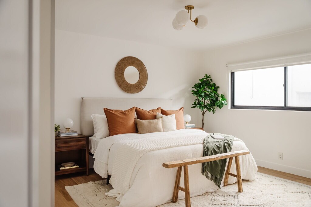 Bright, Spacious & Beautifully Remodeled in Prime Santa Monica. Set in the coveted Sunset Park neighborhood, just minutes from Santa Monica's world-famous beaches, trendy restaurants, and vibrant farmers markets, this stunningly remodeled oversized 1-bedroom is the perfect blend of modern comfort and coastal charm. This clean and airy ground-floor corner unit features French white oak floors throughout, abundant natural light, and plenty of room for a home office. The kitchen is a design lover's dream with an organic tile backsplash, new cabinetry, floating shelves, crisp white appliances, and warm butcher block countertops. Every detail feels thoughtfully curated, from the brand-new black dual-pane windows and recessed lighting to artisan light fixtures, brass finishes, and a gorgeous full bath with bronze-print wallpaper, walnut vanity, and brass accents. The spacious master bedroom offers excellent closets, while the in-unit laundry area still leaves room for extra storage. Outside, a shared lower patio features a redwood deck with lounge and dining spaces, tucked behind lush greenery for privacy. Enjoy Santa Monica living at its best fresh ocean breezes, an unbeatable location, and a home that's as stylish as it is comfortable. EV Car charging at covered carport parking spot. This unit is also available for purchase. TIC sale, call for amazing Lender referrals.