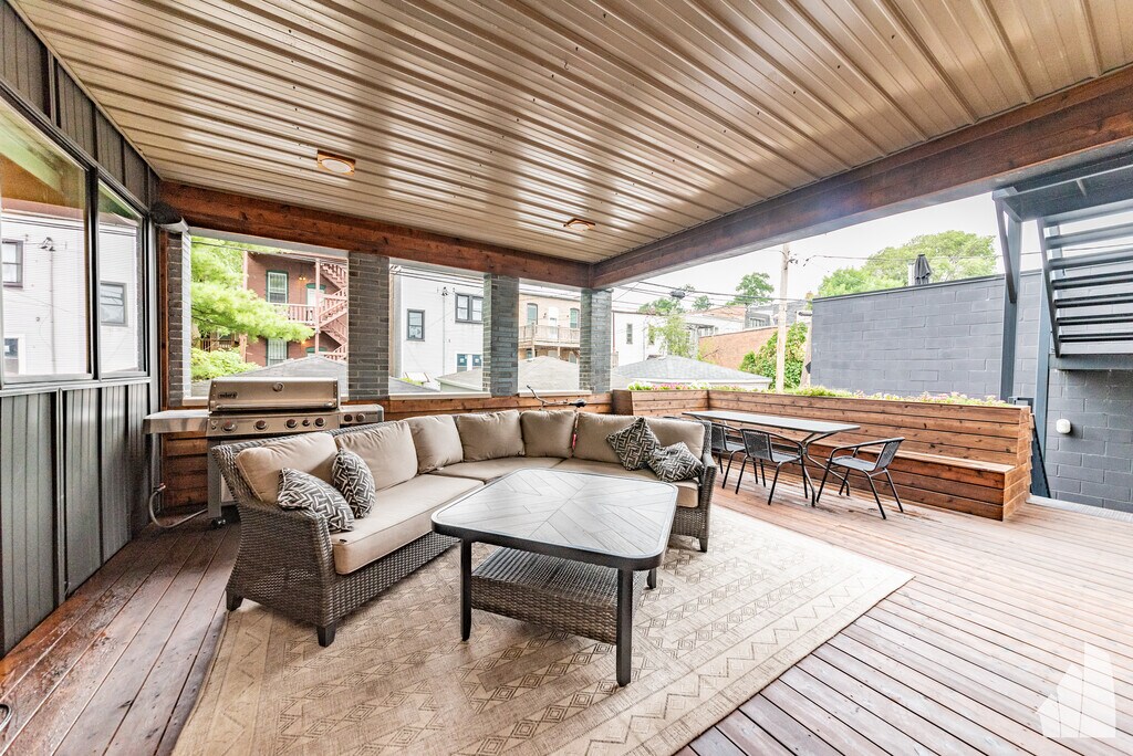 This stunning duplex down is located in a prime Wicker Park location, just a block from the bustling Division and Damen streets. This 2016 all-brick, boutique two-unit building is situated on a corner lot on a quiet, tree-lined residential street. The private entry welcomes you, and the oversized, unobstructed windows flood the unit with natural light. With soaring 10' ceilings and 2,400 square feet of high-quality finishes and materials throughout, the open floor plan is perfect for entertaining and everyday living. The kitchen boasts custom Italian cabinetry, a designer tile backsplash, quartz countertops, and high-end Thermador appliances. It leads directly to a massive private covered patio and a newly completed private garage rooftop retreat, offering over 1,000 square feet of private outdoor space. The lower level features a large family room with a wet bar, three generously sized bedrooms, a laundry room, and two show-stopping bathrooms with heated floors, rain and steam showers, designer tile and fixtures, and a soaking tub. The primary suite includes a massive walk-in closet and a spa-like bathroom. Additional noteworthy features include custom entertainment stand in the living room for extra storage, a pre-wired smart home system, Energy Star appliances and windows, one garage spot, and much more. Enjoy walking to everything!