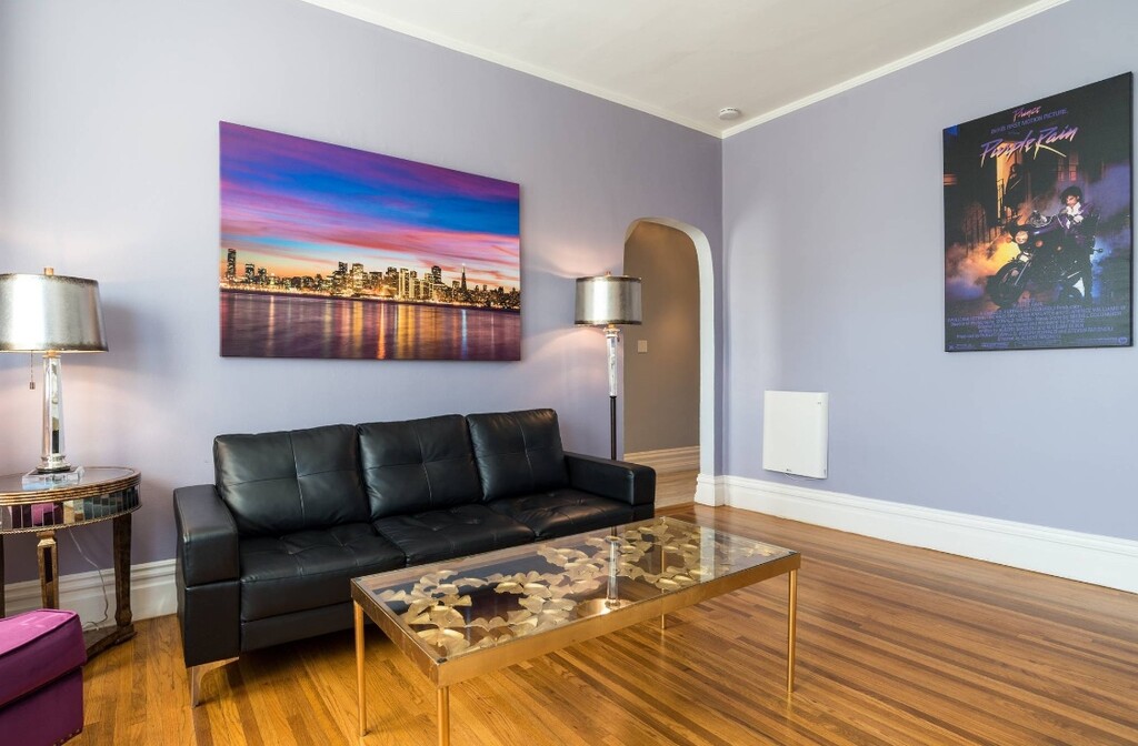 Fully Furnished, Huge property that can be used as a 3, 4 or 5 BD apartment, since the living room has a sofa that pulls out into a queen size sofa bed. There is also a bonus top floor with a full-size bed available to rent for an additional price that is almost like a private studio. Perfect for office space, extra bedroom or playroom. The apartment features beautiful bamboo floors. In-suite washer & dryer. Dishwasher. Stainless Steel appliances. Gorgeous purple granite countertops. Please message me and I will send you a link for the video tour. Excellent location. Scores 96 on Walkscore. Lots of great restaurants, cafes, markets and shops nearby. Easy to get downtown, or on the 101. Walk to Baker Beach. Close to Presidio, Marina, Ocean Beach and Golden Gate Park, Legion of Honor, golf course, VA Hospital, CPMC. 8-minute drive to Kaiser or easy bike ride through the park. UCSF is about a 10–15-minute drive or easy bike ride through the park. Living room has black leather sofa that pulls out into a bed (so you can even use this as a 5 bedroom--if you want.) Plus, there is a very pretty gold butterfly cocktail table, purple velvet chairs, dining table that can seat 4, fireplace, desk, 40? Smart TV and an armoire. Hall closet off the living room. Big bay window. Master bedroom has California King bed, two nightstands, dresser and closet. Front bedroom has bay window, full size bed, nightstand, dresser and closet. Back bedroom has queen bed, nightstand and big mirrored closet. Large eat-in kitchen with stainless steel appliances and gorgeous granite counter tops that are purple, pink, blue and gold. Plus, a dishwasher, gas stove, large side by side refrigerator that dispenses water and ice cubes, tons of cabinets. Marble dining table with bronze croc dining chairs. Keyless entry. Fastest high-speed wireless internet available in San Francisco. Extra monthly charge for utilities, internet, etc. Deposit required. Some pets permitted. Flexible Leases.