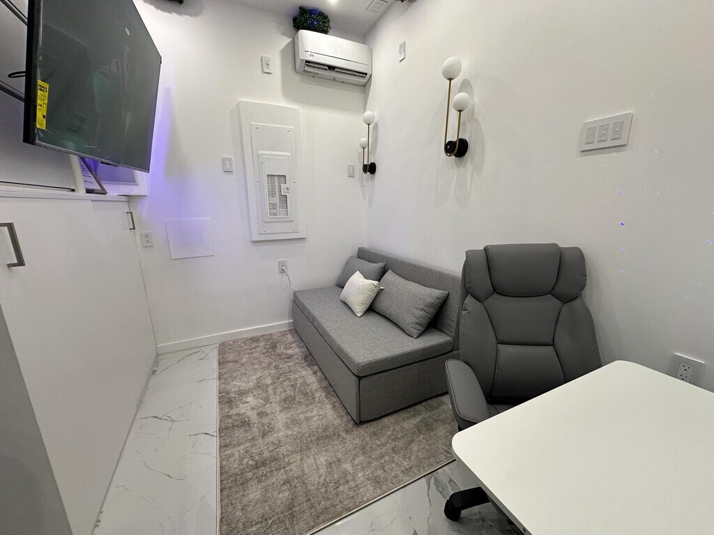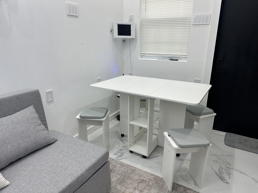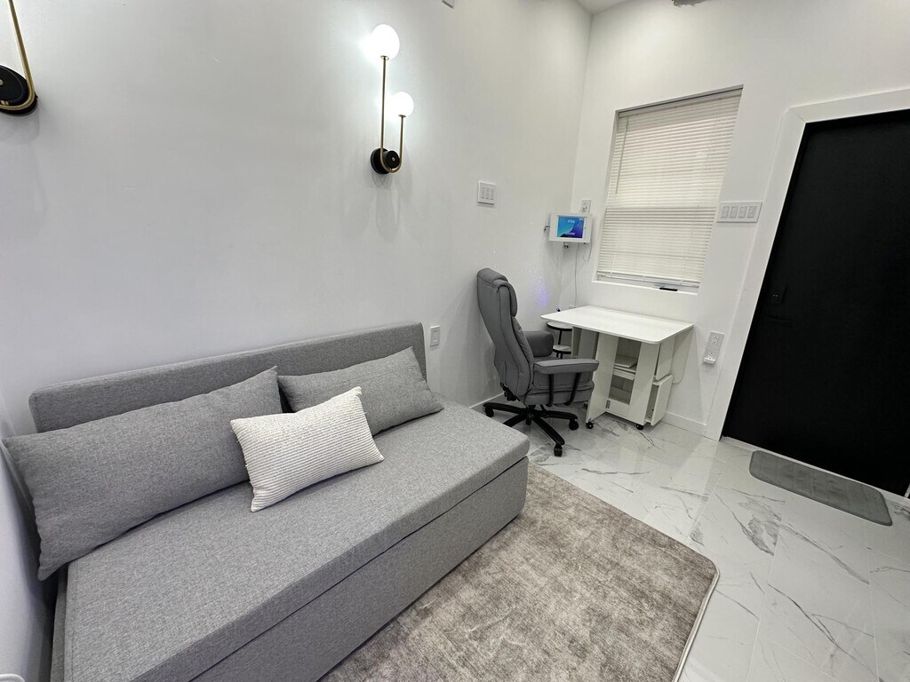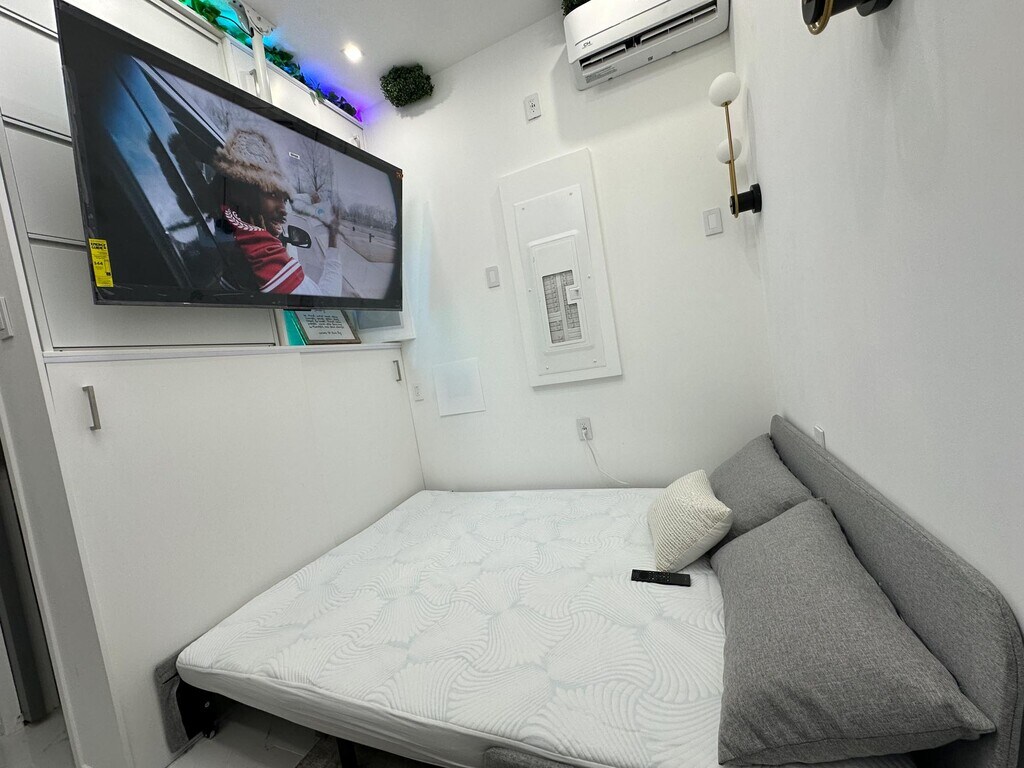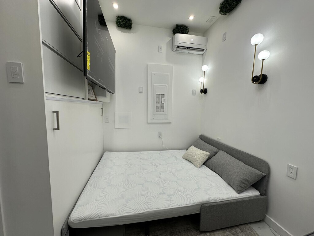 Brand New Smart Tiny Home in a private, fully detached backyard setting. Ground-level first-floor unit with a spacious living area and ample storage. Offered furnished only and available now. Rent: $1,899/month for 1-year term or $1,999 month-to-month Move-In: First month + 1.5× security No broker fee Income Requirement: $70,000+ | Good credit & rental history required No pets Included Furnishings: Queen convertible sofa bed, heated mattress & carpet, dining/work table (seats 4), executive office chair, Keurig coffee & tea station, and 65” smart TV. Utilities: Water & WiFi included; free washer/dryer access. Tenant pays electric only. Smart features include central A/C & heat, smart lighting, smart microwave, touchless faucets, lit cabinets, and Ring security system. Location: 10-minute walk to Danforth Light Rail, one block to bus with direct NYC access (~30 minutes).