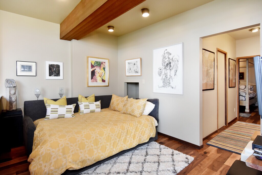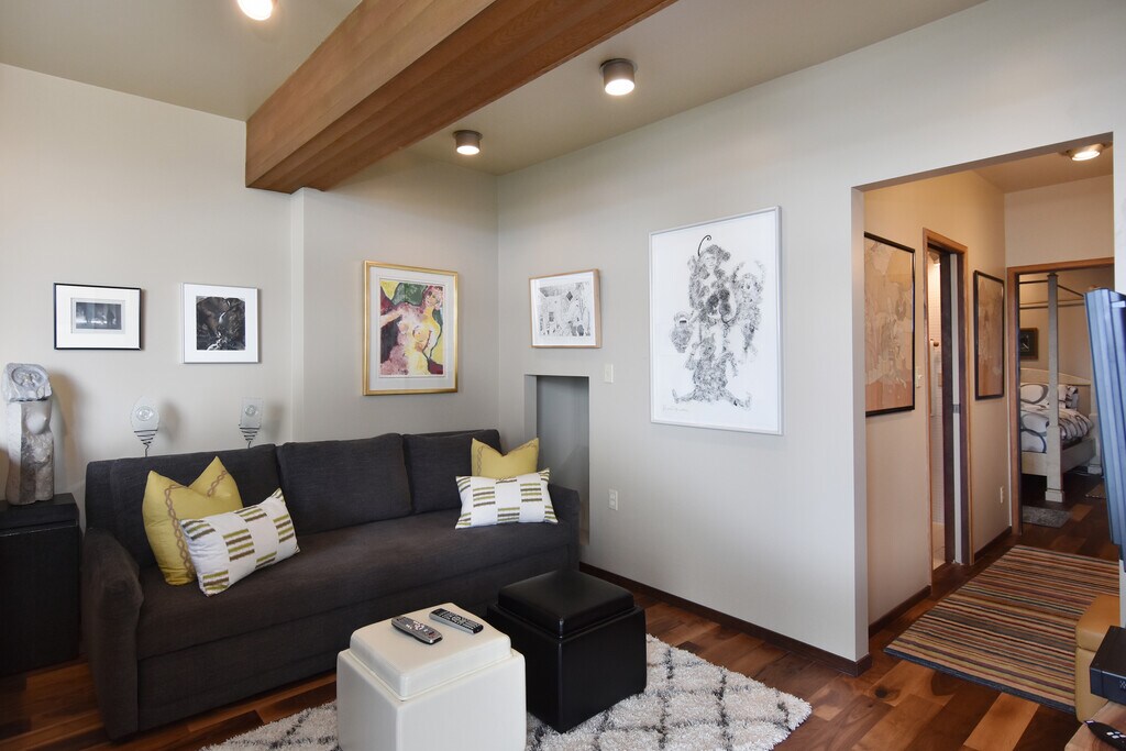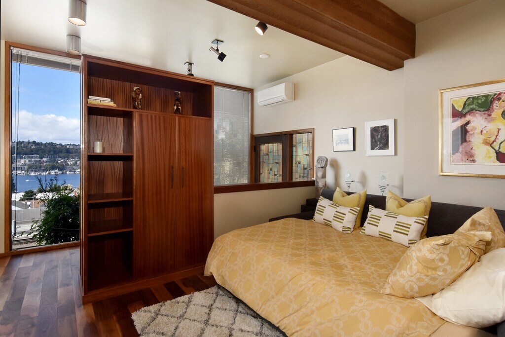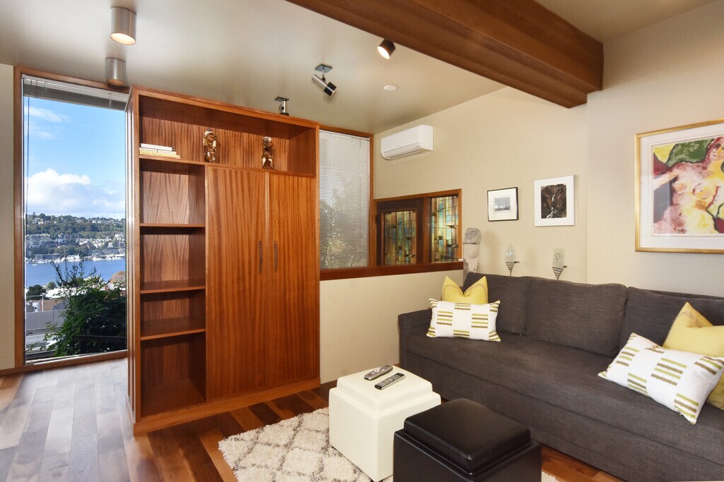 All on one level, this double-suite open concept home depicts urban living with style, comfort and a spaciousness rarely seen in newer buildings. This home is best suited for couples who may have an accompanying child or family member as sleeping areas are not 100% private. Featuring a queen bed in the back bedroom and a very comfortable queen sofa-bed in the den overlooking the Space Needle! Original art-filled walls & smartly furnished rooms overlooking 180 degree views of Olympic Mountains, Lake Union and Downtown Seattle. No need to climb to the rooftop deck to enjoy your views; just step outside your kitchen with a beer in hand to fire up the BBQ and sit nestled among well tended gardens with peek-a-boo lake and mountain views! 10' floor to ceiling windows with beautiful walnut floors throughout. Tiled bathroom and kitchen floors with ample space to entertain inside or out. Two 55” Wall mounted SMART TV's in bedroom and den. Off street parking for one vehicle. Centrally located to I-5, I-90 and 520. Minutes to Amazon, Microsoft, Gates Foundation, SCCA, Seattle Center, U. of WA, S.L.U.