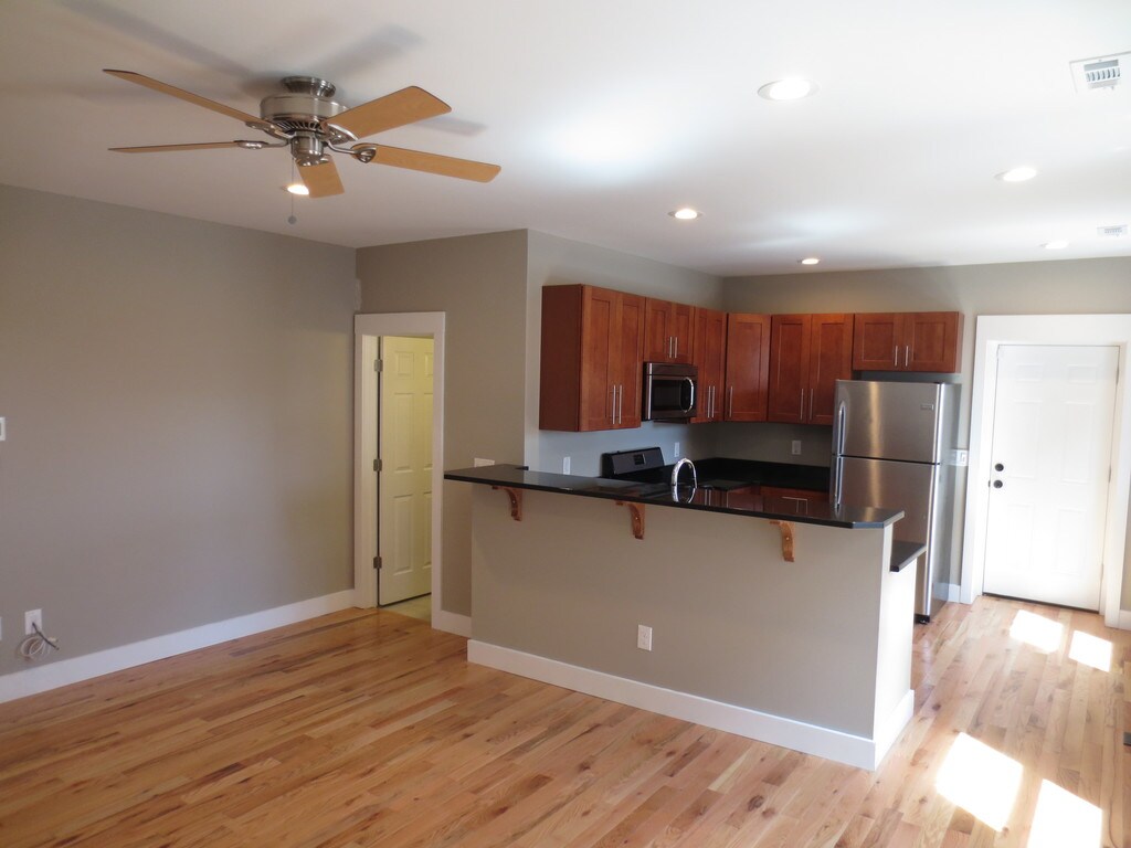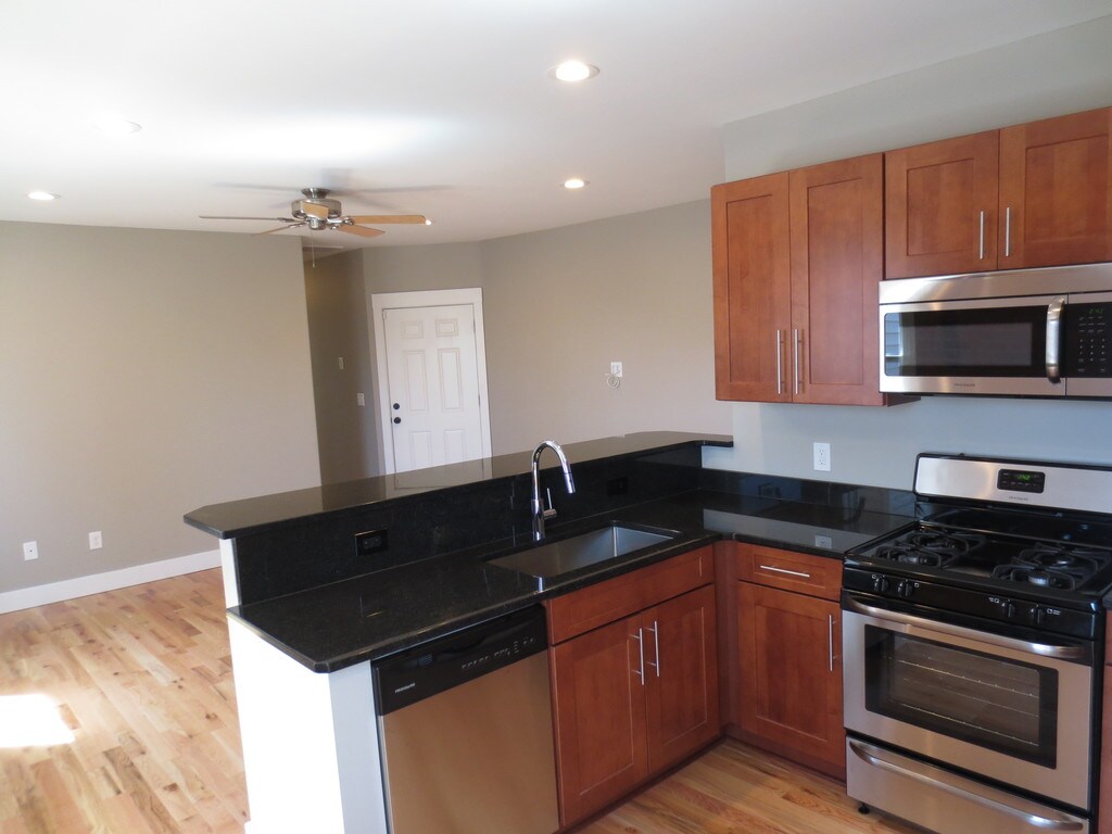 3 bedroom 1 bath Apartment in Gordon Square / Eco Village with Free parking. Extensive High end Renovation . All fit and finishes are of highest quality. These meticulously renovated units have a loft style layout, with 9.5 ft ceilings and a large eat in granite counter that straddles the living room and kitchen. The Granite countertop Kitchens all have matching stainless steel appliances , with dishwasher, garbage disposal, microwave and gas stove and refrigerator. All units have private outside porches. All units come with 1 Free designated parking spot. All units have been 100% renovated throughout. No carpet in any of the units, all new oak hardwood floors. The kitchen and living room have recessed dimmable LED lighting and ceiling fans. The spa like bathrooms have the highest of quality finishes, with tile floors. The shower and walls are lined with designer tiles that sit on a steel Bath Tub. The bath is complete with custom cabinetry and Granite counter tops. LED bath lights and updated exhaust and ventilation system. The Bedrooms are located down a central hallway. The master Bedroom large and open with lots of natural light. it is completed with a large walk-in closet with custom shelving. Bedroom #2 also comes with custom closet and dimmable LED lighting. Bedroom #3 has a closet and a exposed brick wall. The Property has met strict guidelines to ensure that all Environmental standards and green building practices were met during construction, including The City of Cleveland's Green Building community's standards. By meeting theses requirements Westshore Properties Provides it's Tenants with energy efficient savings. All new mechanical systems updated, that maximize latest in green building systems, including brand new 95 % high efficiency furnaces..All Plumbing systems including new supply and sanitary lines. All new hot water tanks.Completely updated electrical system including all new wiring, panel and breakers. All units have had all entry Doors replaced with Steel Dead Bolted doors and all interior doors replaced with Solid Core Wood doors. Large, clean secure, basement with tons of storage and designated laundry units. Off street parking available Security System Be a part of Cleveland's growing neighborhoods. Walk to shops and restaurants like Luxe, Spice, Happy dog , Stonemad, XYZ, &Toast wine bar. Why take your car when all of this is an easy walk, bike or uber ride to any of the following, Gordon Square, Ohio City, Battery Park, W.25th. St. , Edgewater Park, Lake Erie, Lakewood, Whisky Island, Tremont, East 4th, Downtown, W.6th St. Work downtown? Less than 1 block Walk to brand New Rapid station located at Madison and 65th