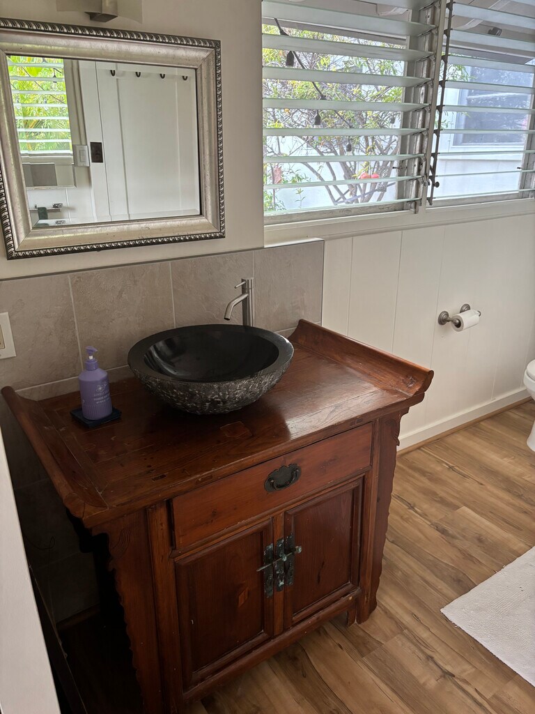 Beautiful newly renovated spacious 1 bedroom, 1 bath for rent in lower Makiki Heights. The upstairs unit of the main house with a security gate and dedicated covered parking. Parking in carport with quick charge Electric charging port. Ample on street parking is available and a bus stop is directly across the street. Utilities not included. Easy biking distance to UH, Downtown, Ala Moana and beaches. Electricity, water and sewer are an additional $100 per month.
