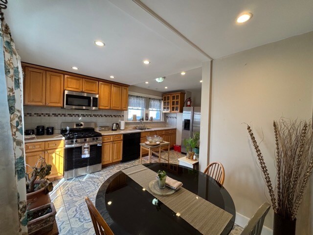 Viewings available in person and virtual on Tue 2/3 and Wed 2/4 8-10am & 4-6pm. Send a message to reserve your spot. Private house: first floor unit, 7 room (3 bedroom) with utilities included: water, gas, heat, WiFi, maintenance, appliances, and shared cooking supplies pots, pans, cups, dishes, etc... Optional portable washer available. Parking: loading/unloading available; permanent parking is off-street. Garage space available (approximately 15% of the unit). Deck, fenced patio, and security cameras. Great location half a block from shops and public transportation.