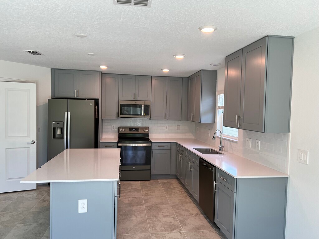 Home with stunning wooded view! Welcome to a comfortable lifestyle in this new Storey Creek Community with 4-bedroom, 2-bath, one-story home that features: 1. Spacious Living: Four bedrooms, two modern bathrooms, and a two-car garage. 2. Outdoor Serenity: Conservation Lot, no rear neighbors. A large backyard with stunning wooded view and a patio ideal for barbecues and relaxation. 3. Elegant Interiors: Fresh painted walls/doors/trims, Tile floors, plush bedroom carpeting, 42" white cabinets, white quartz countertops, and stainless-steel kitchen appliances (refrigerator, range, dishwasher, and microwave). LED ceiling fixtures and ceiling fans, window blinds in each room, Ring Video, Washer and Dryer included. 4. Modern Features: Ring video doorbell, ample pantry space, recessed lighting, double bathroom sinks, and sliding doors to the patio. 5. Convenient Location: Walking distance to schools. Minutes away from shopping centers, pharmacies, banks. Easy access to Disney Theme Parks, Orlando Airport, and major Florida highways (SR 535, I-4, US 192). 6. Maintenance-free living: Lawn care is included. 7. Storey Creek Community's luxury amenities include: A fully-equipped gym, clubhouse, and resort-style swimming pool, Sports Complex with Basketball, tennis, volleyball courts, soccer fields, playground and a dog park. Don't miss this exceptional chance to call this beautiful house your sweet home! MOVE-IN READY!