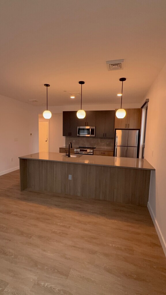 Brand-new apartments at on Gardner Street offering modern design, upscale finishes, and a full-service living experience. These newly built units feature open layouts with hardwood floors, high ceilings, floor-to-ceiling windows, and a private balcony in every apartment. Kitchens are designed for both style and function with granite or quartz countertops, stainless steel appliances, island kitchens, dishwashers, disposals, microwaves, and ample cabinet space. Washer and dryer are located in every unit, along with central air conditioning, high-speed internet access, walk-in closets, and additional storage space. The building offers an impressive collection of amenities including a fitness center, business center, conference rooms, clubhouse, lounge, multi-use community room, and bicycle storage. Community-wide WiFi is available, along with package services, 24-hour access, key fob entry, elevators, wheelchair accessibility, EV charging stations, and a pet washing station. On-site maintenance and an on-site property manager provide convenience and peace of mind. Set within a contemporary residential community surrounded by nearby parks and green space, this property blends modern convenience with everyday comfort in a thoughtfully designed setting.