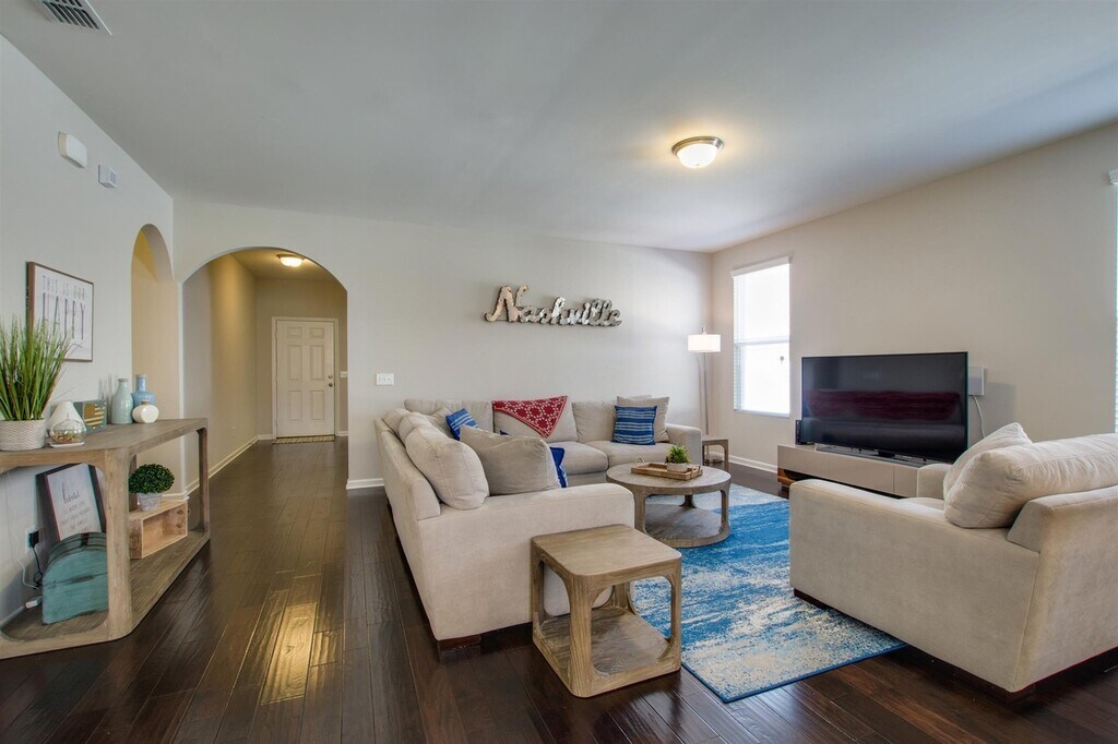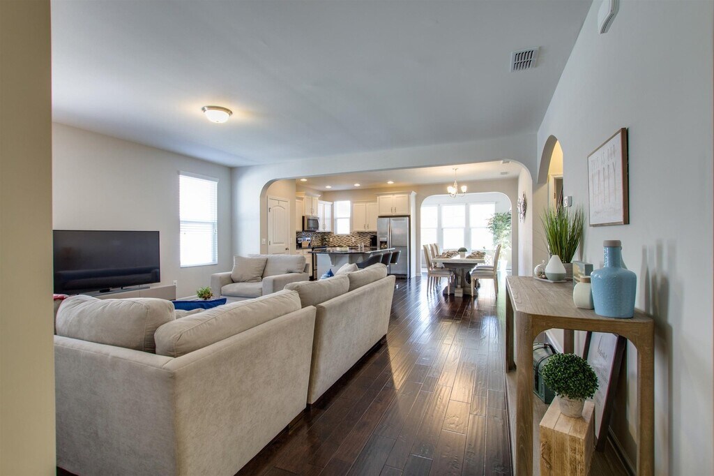 Wonderful home in the highly sought after community of Villages of Riverwood. 3 bed, 2 bath, PLUS Large bonus room and a sun room. All bedrooms downstairs. This beautiful home features an inviting open floor plan with hardwood floors, perfect for entertaining. The large master suite on first floor features his and hers walk-in closets. Stainless appliances in the kitchen, along with a spacious island, and granite counters. Sun room is truly a sun room with large windows letting natural light in throughout the day. Backyard is fenced for children to run through, and also includes fruit trees and newly built garden boxes! Upstairs you'll find a large bonus, along with spacious attic storage. Tankless water heater, 2 car garage, carpeted bedrooms, tiles bathrooms, hardwood in all other spaces. Enjoy a brief walk to community amenities - pools, fitness center, community events & clubhouse. Public green spaces. Fabulous convenient location, close to interstate, Music City Star train, lake, Nashville Shores, and hospital. Short drive to downtown and airport. See photos for layout Included: Oven, Range, Microwave, Dishwasher Rent $2475 / month Security Deposit $2900 Utilities and landscaping are not included and will be responsibility of tenant. No Smoking allowed inside the unit. Pets: One small dog allowed at $25/month and pet deposit Note: Dog will need to be approved to ensure it meets size and breed restrictions. Credit/Background checks will be required for all adults (age 18 and over) who will be living in this property. No co-signers.