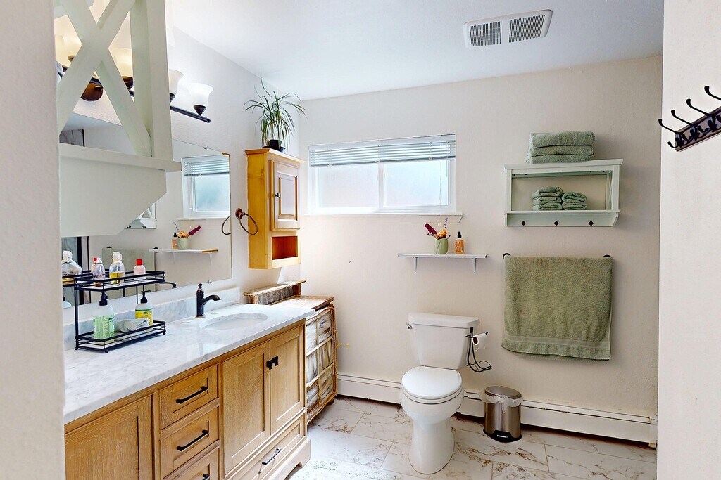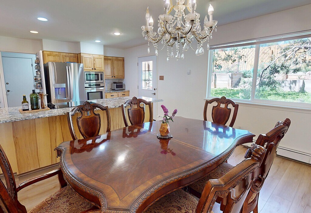 Beautifully maintained home in Los Alamos, NM. Offers a furnished 1,850 sq. ft upper level designed for comfort and convenience - perfect for traveling professional, contractors, or families seeking flexible 1-3 month stays. Lease options flexible. Features include: - Three furnished bedrooms, each with a queen bed, nightstand, dresser, and ample closet space -Two full bathrooms upstairs: Primary bathroom with walk in-shower, dual sink vanity Second bathroom with tub/ shower combo and dual sink vanity - Bright living area with a comfortable sofa, smart TV, and high-speed Wi-Fi, wood burning fireplace (not for guest use) - Dining area with kitchen table and seating. - Fully equipped kitchen with cookware, dishes, utensils, 14 cup drip coffee machine, Ninja compact blender - Large deck overlooking wooded forest land - 8-12 minute drive to LANL, LAMC - Large landscaped backyard - Downstairs with two additional unfurnished rooms - Downstairs with additional bathroom (shower not for guest use) - Washing machine and dryer - EV charger outlet in garage - 450$ monthly utilities included (gas, water, electric), additional usage will be paid by tenant. - Will consider house trained dog for additional deposit and fee Administrative fee: $50 background check, $250 cleaning fee, $25 per dog per month, $500 refundable pet fee Rules: - Downstairs bathroom not for showering - No use of fireplace - No smoking or vaping including on deck - No parties / gathering exceeding 10 people - Per Los Alamos County no barking dogs for more than 10 continuous minutes day or night - Noise ordinance quiet hours 9pm-7am - Utilities including gas, electric, water exceeding $500/ month will be paid monthly by tenant - Only renters on the lease may live in the home PHOTOS DO NOT REFLECT FURNITURE. Can be unfurnished if desired.