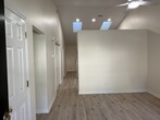 This 900 sq. ft. property at 2 Crystal Oaks Ct features 2 bedrooms and 2 bathrooms. New flooring, redone ceiling, freshly painted, new lighting throughout unit, and new bathroom mirrors. Property is at the end of 6 unit building, ensuring more privacy. Bedrooms are of similar size, with the rear master having walk in closet. Additional amenities include a washer and dryer, and an attic for extra storage. The exterior features a patio and screened in porch, providing outdoor space for leisure, and additional storage space in the outside patio closet. Master bedroom has access point for gfiber for dependable WiFi.