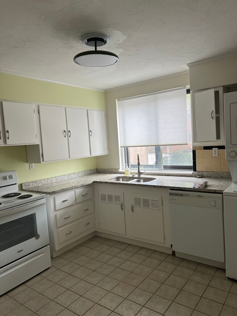 I am renting a 2 bedroom, 1 bath (large living room and kitchen) apartment in the beautiful el Dorado low rise complex on Ashland street in Worcester, minutes walk from downtown and WPI. Bright and sunny with a large living room window that overlooks a stunning courtyard. This is a quiet building with high rate of owner occupancy. We just finished painting the whole apartment and renovating the bathroom with a brand new tiled tub/shower, new vanity/sink, and shelving. We have also put new light fixtures and blinds throughout, with dimmable lights in bedrooms and living room. The fridge/stove are 2 years old. There is a dishwasher and laundry (washer and dryer) in-unit. The apartment has central A/C. $2000 per month including heat and water, garbage collection, landscaping, etc. Includes a locked storage unit in basement and garage parking for 1 car. Available immediately!