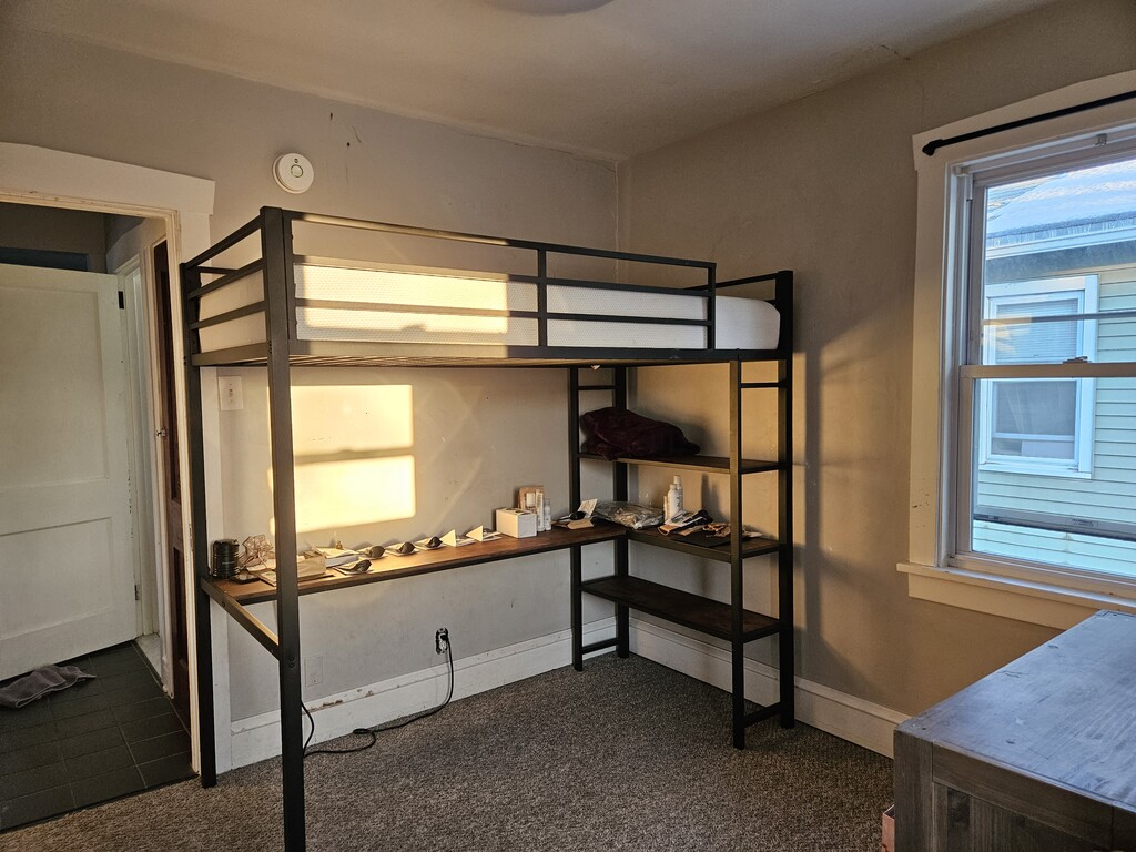 Upstairs Apartment in a Funky, Creative, Eco-Friendly Collingswood Multi-Unit Home Welcome to a thoughtfully designed upstairs 2-bedroom apartment in a multi-unit home. This space is ideal for someone who appreciates creativity, character, and a subtle cosmic touch. As you arrive, you’ll enter through a front door painted with a starry night, then head upstairs past a gallery-style stairwell featuring original nebula paintings. The Apartment (Semi-Furnished) Large primary bedroom includes a closet and an elliptical machine (tenant is welcome to use). Smaller bedroom includes a closet, dresser, lofted bed with built-in desk and shelving underneath. Living room area includes a dining table with seating for four, two barstools at the counter, a wall-mounted smart TV, and a large chalk wall (perfect for notes, lists, planning, or doodles). Hallway closet for additional storage. Newly remodeled bathroom. Kitchen with garbage disposal, gas range, oven, microwave, and fridge/freezer. The apartment is cozy, efficient, and well suited for someone who values a balance of function and creativity. Utilities & Connectivity The house is mainly solar-powered; electric, gas, and Wi-Fi are included. Wi-Fi is shared with the owner, who occupies another unit. Laundry Shared laundry room in the basement. All tenants are assigned two designated laundry days per week. Parking Street parking only. The garage is rented separately and not available for tenant use and the driveway must remain clear at all times for them to access their vehicles. Land The owner is a passionate food gardener and circus artist; there is a raised-bed garden and an aerial rig on the property. If the tenant is interested in sharing these amenities, please inquire. The Neighborhood Home is located in the Collingswood School District (Newbie Elementary-right across the street). This is an extremely safe, friendly, and walkable neighborhood. Walk to Cooper River Park, Knight Park, downtown Collingswood, the PATCO and ALDI. Quick access to Route 130 and the Ben Franklin Bridge. Vibe + Ideal Tenant This is an owner-occupied, multi-unit home with no shared living spaces beyond the laundry room. However, you may occasionally encounter other occupants. We aim to maintain a respectful, easygoing, eco-friendly, and community-minded environment. This place is best suited for tenants who are (generally) quiet and neat. Pets and small families welcome, with the expectation that the property is treated with care. A security deposit will be held for any damages during occupancy. Please note: There will be normal household sounds from other units, and there is an elementary school across the street. If you are seeking a completely silent living environment, this may not be the right fit. (Adorable cats not included.)