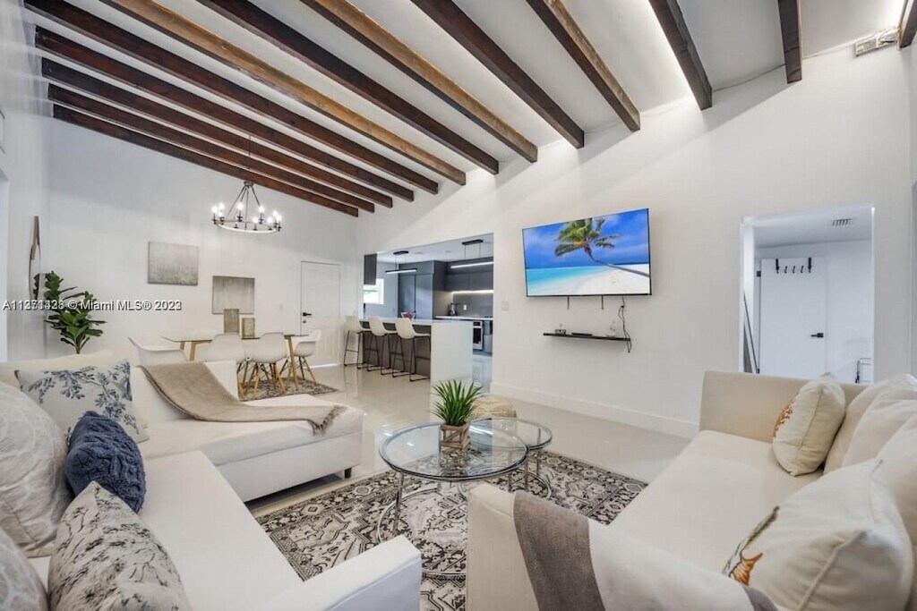 Spacious 3-bedroom, 2-bathroom located in an ideal location. Close enough to the City while still being able to enjoy, calm residential living just minutes from Design District, Downtown, Midtown, and Brickell. This remodeled home features a large living room with dining space that's perfect for entertaining, the expansive kitchen has large stainless steel appliances with massive pantry space that makes cooking easy! The tranquil bathrooms have been completely renovated giving a spa like touch. The home has a private in-laws area with a full bathroom allowing for families to enjoy the house together but separate! Enjoy sunset cocktails in the private, enclosed backyard, tour today! Full walk-through video available!