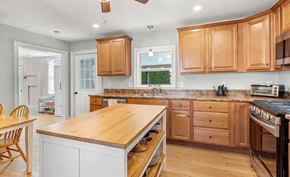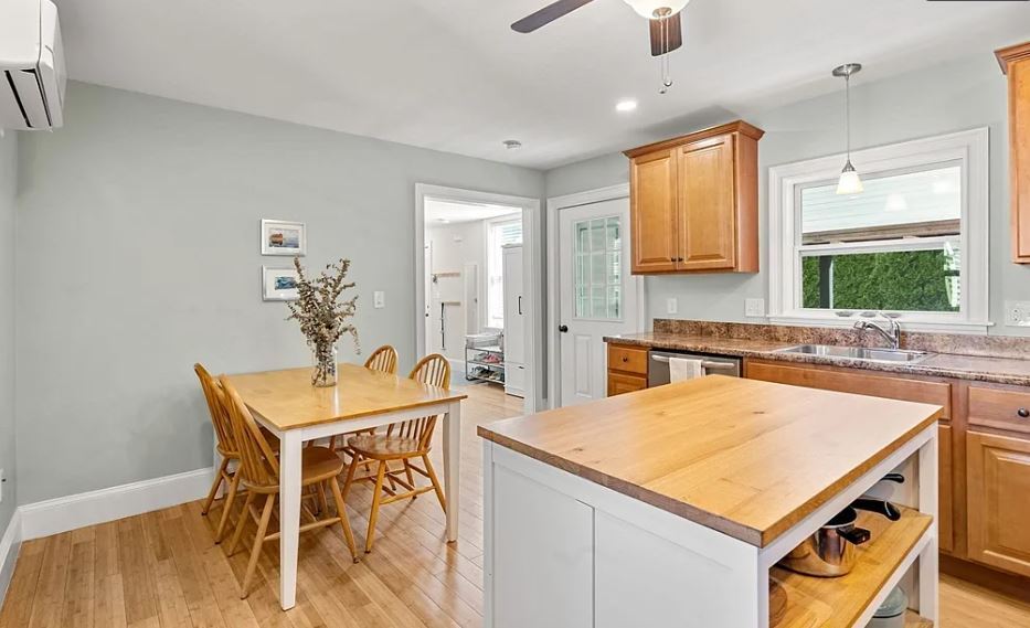 On the far end of a quiet, one way street in the desirable Collins Cove neighborhood, this 3-bedroom, 1 bath home is close to all Salem has to offer. The home recently had a full restoration, including newer stainless-steel appliances, recessed lighting, and ample cabinetry in the eat-in kitchen. Hardwood flooring throughout. One bedroom is conveniently located on the first floor while two bedrooms with generous closets are on the second. The home has an efficient ductless HVAC system for heat and air conditioning. Enjoy the quiet neighborhood from the front to back porch and a private yard with garden beds and a magnolia tree. Plenty of clean, dry storage in the basement. Convenient to the MBTA commuter rail, Collins Cove playground, the Common, and Salem Willows.