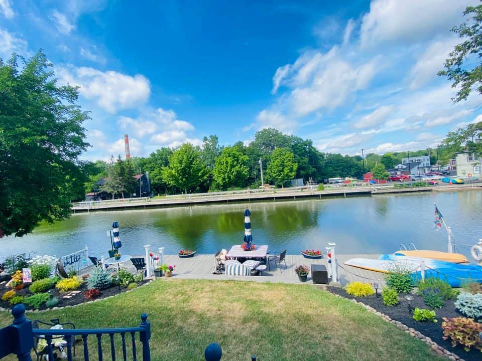 Canal-front fully furnished 2nd floor large apartment in the heart of the Village of Fairport. 5 minute walk to restaurants, shopping, bars/breweries, Colonial Belle boat. 1700 SF in unique 110-year old historic property. You'll love our colorful eclectic decor & upscale MacKenzie Childs Decor throughout. A true mini vacation inside & out! 2 New King Adjustable Beds, 1 New Full Bed. Includes full access to huge yard with large dock, beautiful gardens, fire pit. Electric Fireplace for cozy winter days. Available Mo to Mo