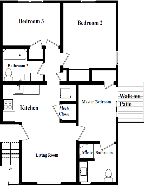 - 3BR, 2BA