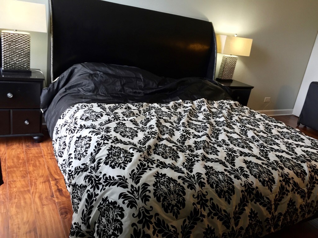Hurry! BRIGHT, SUNNY & REMODELED! Owners remodeled for themselves but had to move away. View gorgeous Chicago skyline and sunsets every day from your living room on the 42nd floor. Beautiful dark hardwood laminate floors and fresh paint throughout. Beautiful classy lighting LED light fixtures in Living room & dining area. Kitchen has granite countertops & glass backsplash. Fully remodeled bathroom with granite countertops, crystal light fixture, stylish new tile in shower and floors. Dimmable LED lights in LR & Kitchen. Panoramic view from the balcony. Available for immediate move in -1 bed/1 bath condo at 200 N Dearborn st, 42nd floor, unobstructed views, loads of natural light, steps from the riverwalk & very well located to multiple L lines. Great location! Rent includes all utilities - internet, cable, heating & air conditioning (except electricity). Amenities: The building has a 24 hour doorman, heated pool (indoors & accessible all year), workout room, BBQ rooftop open seasonally. The 24 hour doorman/security provides extra peace of mind esp with the current political landscape). There is a in-person management team & full time onsite maintenance for same day help with issues & maintenance fixes. It has been recently painted and has owner level updates with granite countertops, glass backsplash in kitchen, dimmer lights, you have to see it to appreciate it. Easy showing availability. Building amenities include all season heated pool open year round, with attached sundeck, exercise room, laundry room, sundeck, bike room. Amenities include all year heated pool, fitness area, sun patio deck (for sun bathing, grilling etc.), Chicago Pedway access.
