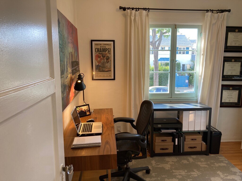 Lovely Spanish style condo on Washington Avenue and 20th St in Santa Monica, same owner since 1990. Walking distance to Montana and Wilshire Blvd. Kitchen updated. Baths will re-tiled. The Master Bedroom has air conditioning unit. Peaceful, full of light. Well maintained. Will consider a cat with a pet deposit of $500. There is one parking space and permits and visitor parking for additional vehicles.